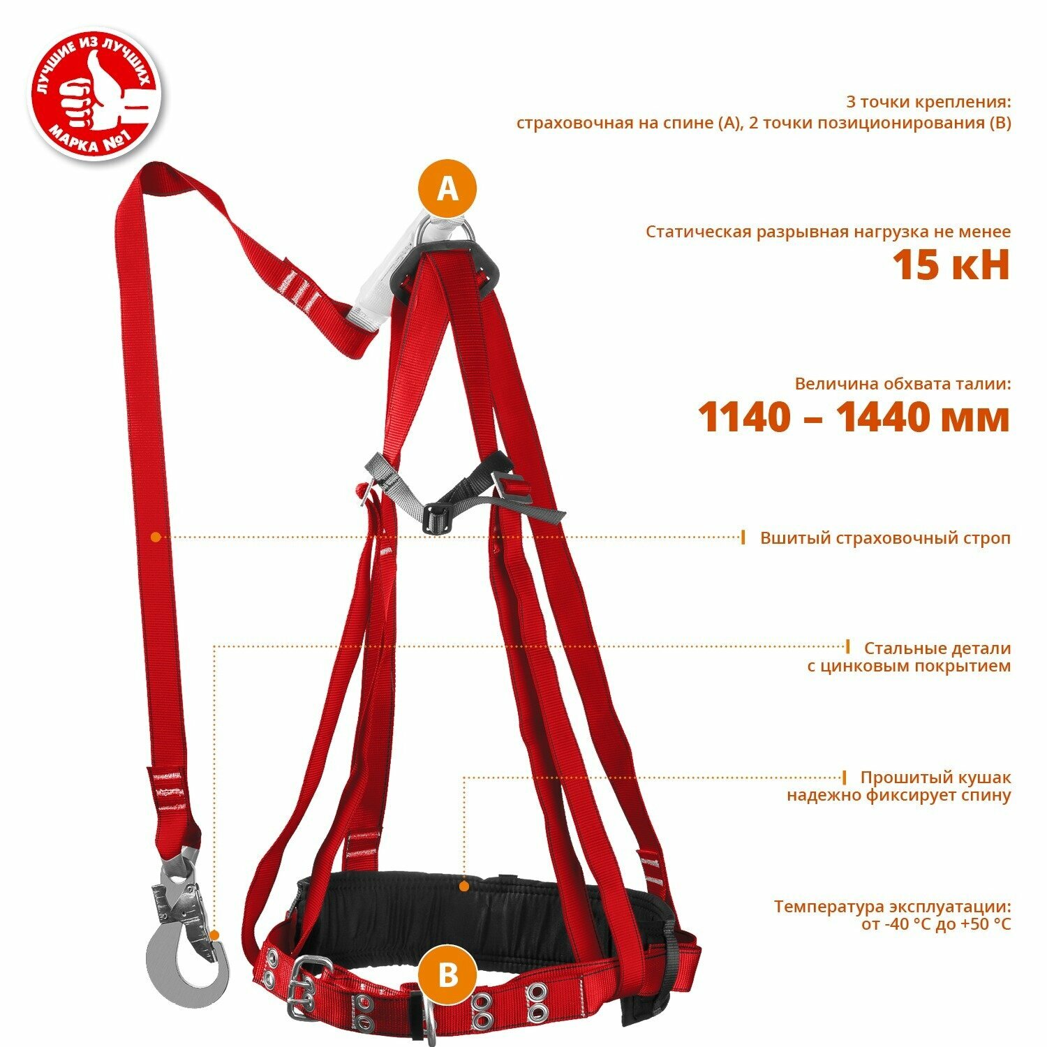 Купить Лямочный пояс ЗУБР Урал с 3 точками крепления ленточный строп с амортизатором 30 см обхват ремня 1140-1440 мм с доставкой по всей России.