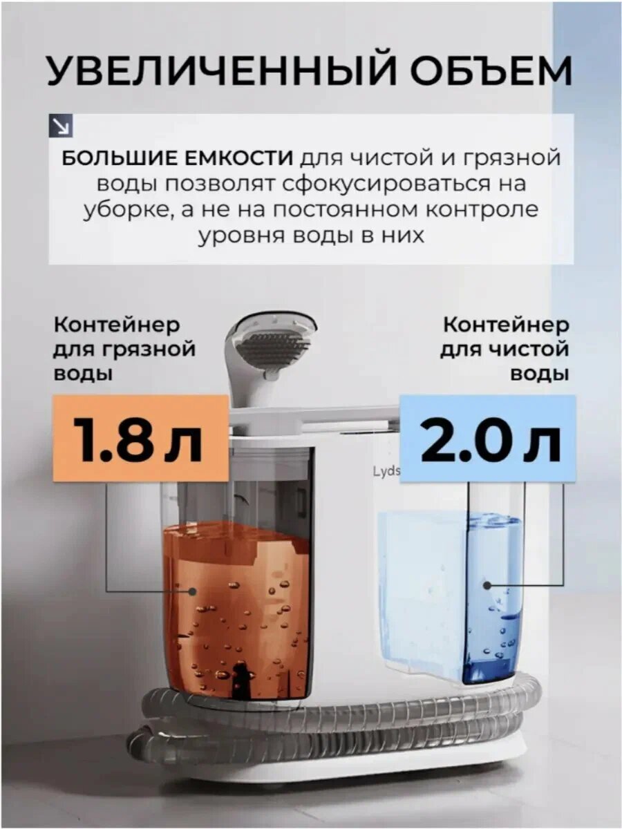 Lydsto Моющий пылесос для чистки тканевых поверхностей C2 EU, Швабра для мягкой мебели, матрасов и ковров, белый: сравнение цен, характеристики, фото, актуальное наличие и цены.