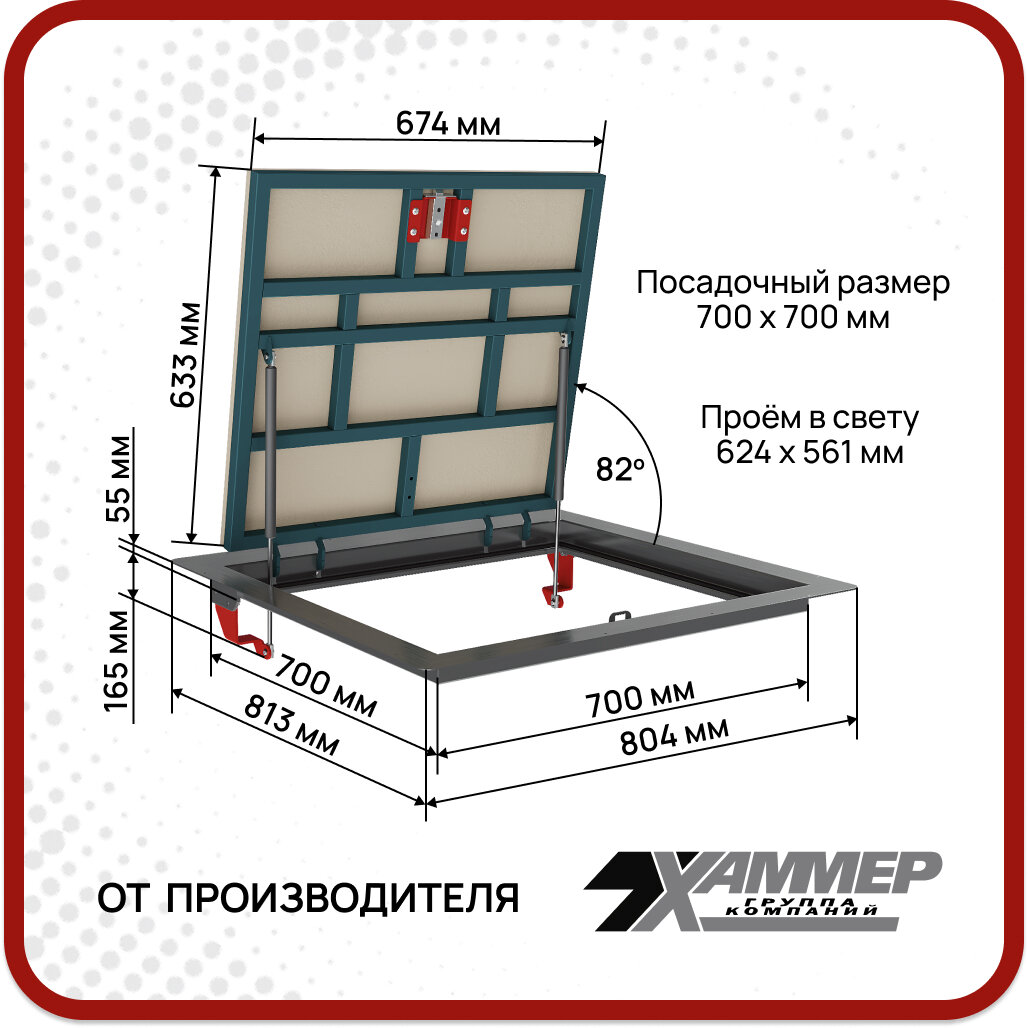 Люк напольный Хаммер Бонд Лайт 70х70 см, стальной, в подвал, для погреба, скрытый монтаж