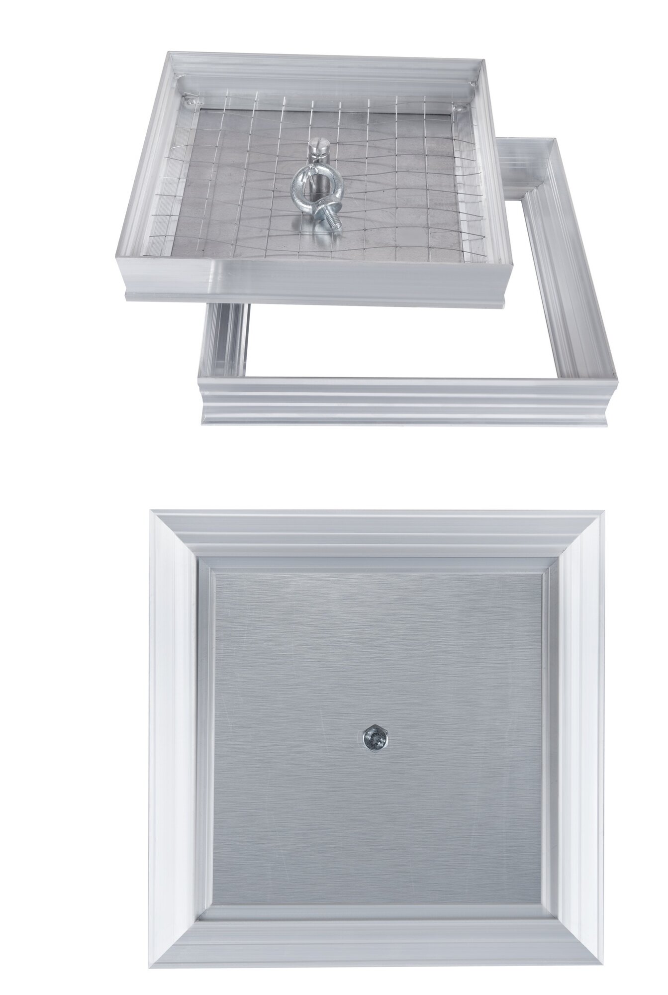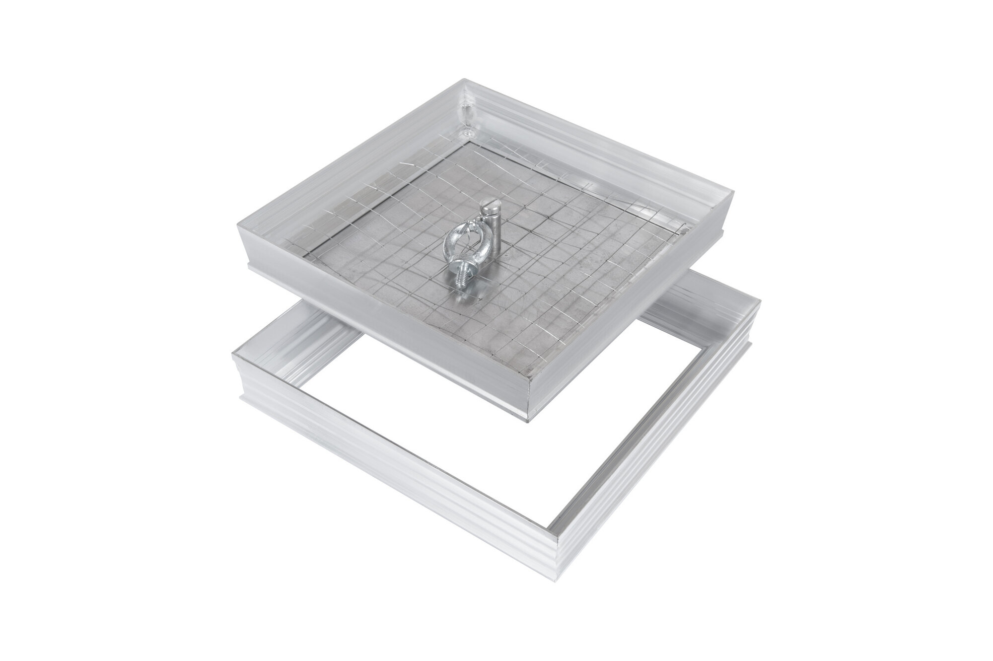 Люк напольный Премиум Small 400х500Габариты (ДхШхГ) мм 400х500х50Проем в свету (ДхШ) мм 340х440Размер дверцы (ДхШ) мм 395х495Вес изделия кг 2,6 Напольный люк для ревизии, заполняемый, с резиновым уплотнителем Материал: алюминиевый профиль сложной формы, толщиной 3-4 ммМетод сборки: аргонно-дуговая сваркаЗаполнение крышки: при монтаже рекомендуется использовать облегченный материал (пенобетон, ячеистый бетон, пеноплекс и т. д.). Заливка крышки люка в полном объеме бетонной смесью или цементом увеличивает вес крышки люкаФиксация: собственным весомДополнительные опции: узлы подъема, угловые фиксаторы, усиление люка