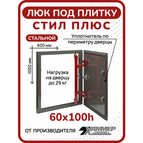 Люк ревизионный под плитку Хаммер стил плюс 60х100 (ШхВ), металлический, скрытый, для установки в стену.