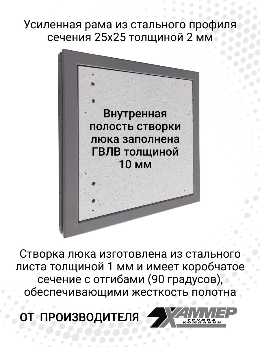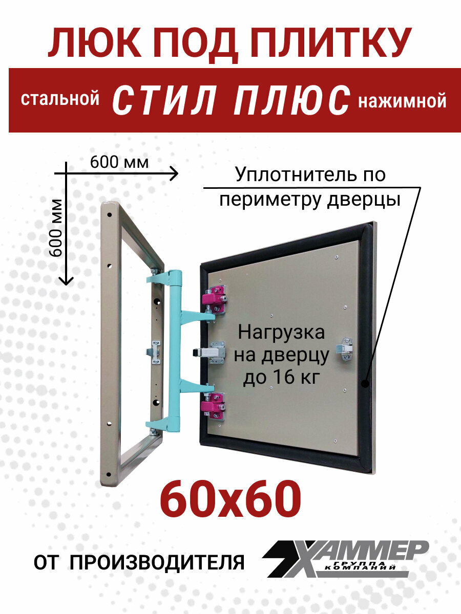 Люк ревизионный под плитку Хаммер стил плюс 60х60 см металлический, скрытый, для установки в стену.