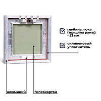 Люк предназначен для отделки шпаклевкой, краской и рулонными материалами, толщиной не более 1 мм. Устанавливается в проемы и перегородки из кирпича, дерева, бетона, железобетонных конструкций, в профильные каркасы, зашитые листом гипсокартона.