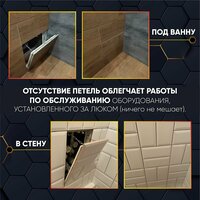 Люк под плитку Ревизор 600х400 открывается одним нажатием и применяется для скрытого доступа к сантехническим коммуникациям. Стальной люк предназначен для установки под ванную и в стену и невидим под отделкой. При открывании сантехническая дверка ревизионного люка невидимки из стали надежно зафиксирована при помощи ограничителя, позволяет без опасений использовать люк скрытого монтажа даже с объемной верхней облицовкой из плитки, облицовочного камня или керамогранита. Скрытый люк под плитку устанавливается в любые типы стен: гипсокартонные, кирпичные, бетонные и блочные. Основу облицовывания можно положить внахлест, что обеспечивает сохранение рисунка при кладке сантехнического люка скрытого монтажа и исключает необходимость резки материала для покрытия. Глубина рамы - 40мм.