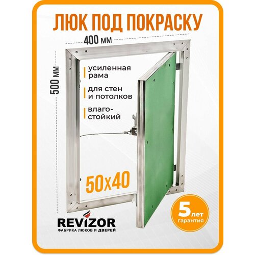 Ревизионный люк под покраску «Ультиматум» съемный монтируется в однослойный гипсокартон на потолок. Сантехнический люк оснащен удобной распашной съемной дверцей для легкого доступа к трубам и проводам, при этом маскирует их под интерьер. Преимущества технического люка Revizor• Удобно шпатлевать и красить. Форма кромки дверцы люка для потолка выполнена так, что удерживает шпаклевочный и покрасочный материал.• Съемная дверца технологического люка.• Защита от деформации при монтаже и эксплуатации благодаря стальным уголкам (впрессованным в дверцу) и ребрам жесткости скрытого люка.• Защита от пыли и влаги. По периметру люка-невидимки не образовывается налет пыли, коммуникации надежно защищены от влаги и пыли, а помещение, где располагается люк от шума. Для достижения такого результата, каждый люк дополнительно оснащается уплотнителем.• Безопасный доступ к коммуникациям. У потолочного люка имеется страховочный трос с карабином. Трос, не позволяет выпасть люку из проема при его открытии.• Простота и удобство использования. За счет замков с нажимной защелкой - дверца металлического люка открывается и закрывается нажатием, без присосок и прочих приспособлений. Ресурс данных замков не выработается даже после двадцати тысяч открытий/закрытий.• Простота покраски. Во время покраски и в процессе эксплуатации сантехнический люк можно отсоединить, крепление для съема позволяет это сделать.• Влагостойкость. Возможность использовать люк полд покраску в помещениях с повышенной влажностью. Дверца скрытого люка, сделана из влагостойкого гипсокартона, фирмы Knauf.
