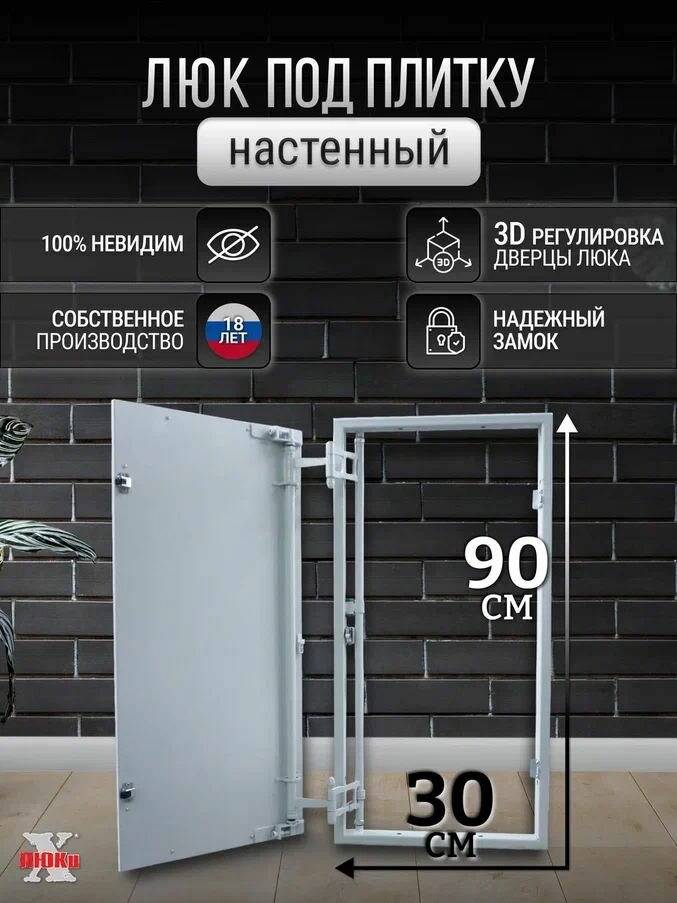 Люк ревизионный под плитку Пилот 30*90 см, стальной, сантехнический, нажимной, металлический, настенный, люк невидимка, дверца ревизионная скрытого монтажа: сравнение цен, характеристики, фото, актуальное наличие и цены.
