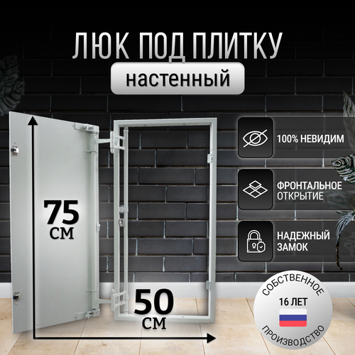 Люк ревизионный под плитку Пилот 50*75 см, стальной, сантехнический, нажимной, металлический, настенный, люк невидимка, дверца ревизионная скрытого монтажа: сравнение цен, характеристики, фото, актуальное наличие и цены.