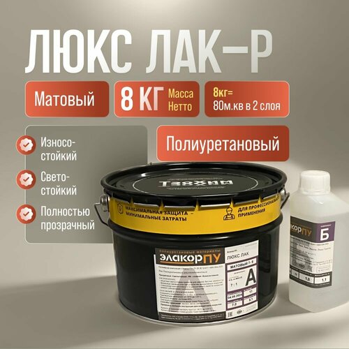 Элакор-ПУ Люкс Лак-Р Матовый – полиуретановый двухкомпонентный лак, светостойкий, УФ-стойкий. Степень блеска: 7-9%.