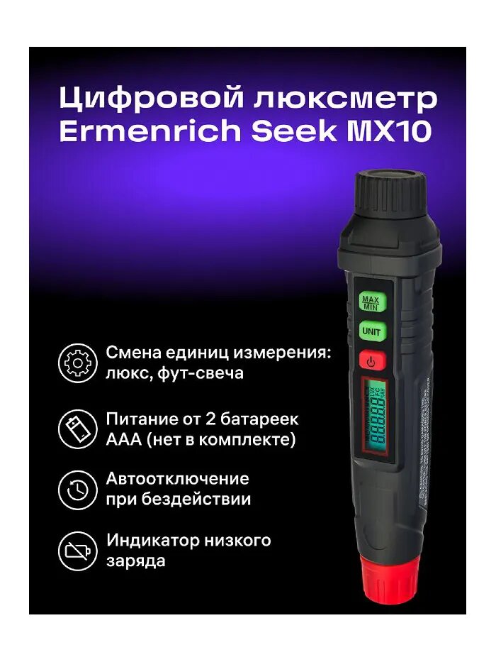 Купить Люксметр Ermenrich Seek MX10, цифровой, для измерения освещенности с доставкой по всей России. Люксметр Ermenrich Seek MX10, цифровой, для измерения освещенности: сравнение цен, характеристики, фото, актуальное наличие и цены.