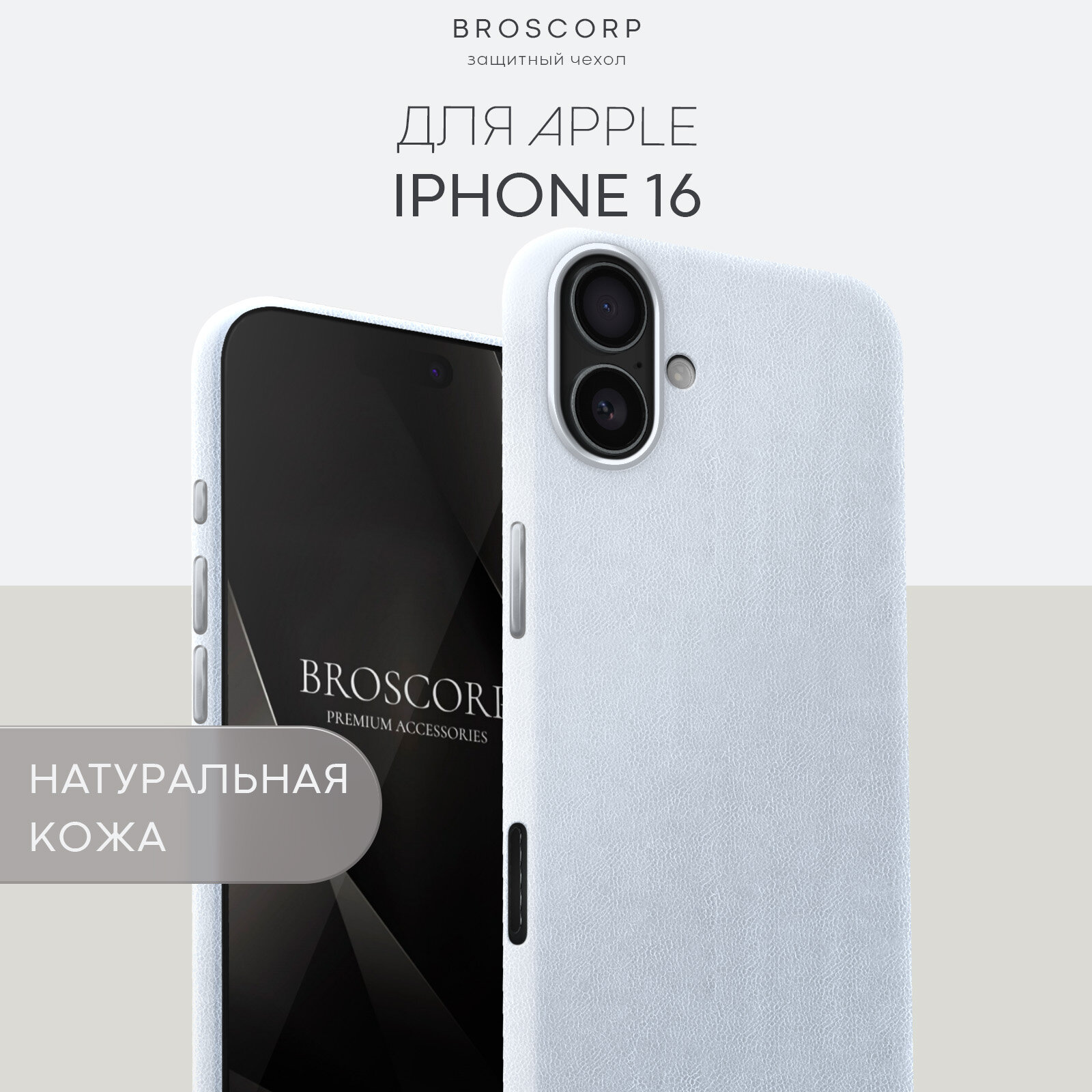 Люксовый кожаный чехол BROSCORP на Apple iPhone 16 (Айфон 16), натуральная кожа, белый: сравнение цен, характеристики, фото, актуальное наличие и цены.