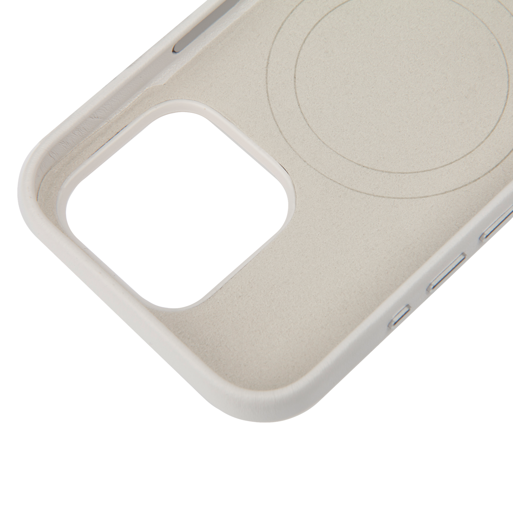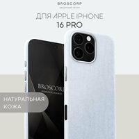 Купить Люксовый кожаный чехол Broscorp на Apple iPhone 16 Pro (Айфон 16 Про), натуральная кожа, белый с доставкой по всей России.