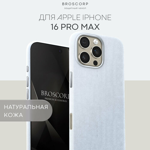 Купить Люксовый кожаный чехол Broscorp на Apple iPhone 16 Pro Max (Айфон 16 Про Макс), натуральная кожа, белый с доставкой по всей России.