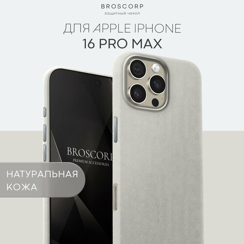 Купить Люксовый кожаный чехол Broscorp на Apple iPhone 16 Pro Max (Айфон 16 Про Макс), натуральная кожа, титановый серый с доставкой по всей России.