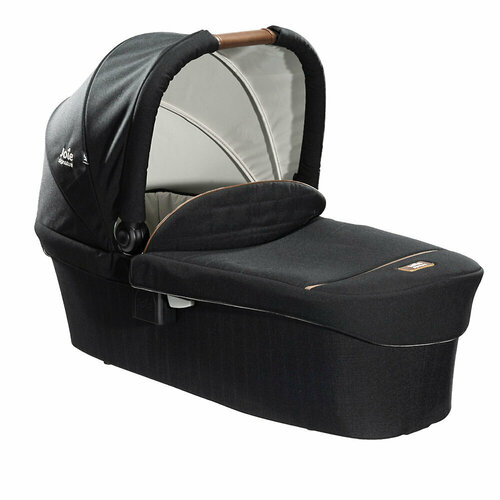 Капюшон открывается более чем на 90°, его обод является также удобной ручкой для переноски с мягкой рукояткой, покрытой экокожей. Обращает на себя внимание внешнее оформление: производители выбрали нестандартные для детского изделия цвета. Возможно, именно в этом и кроется секрет популярности элегантной люльки для младенцев Joie Ramble.
