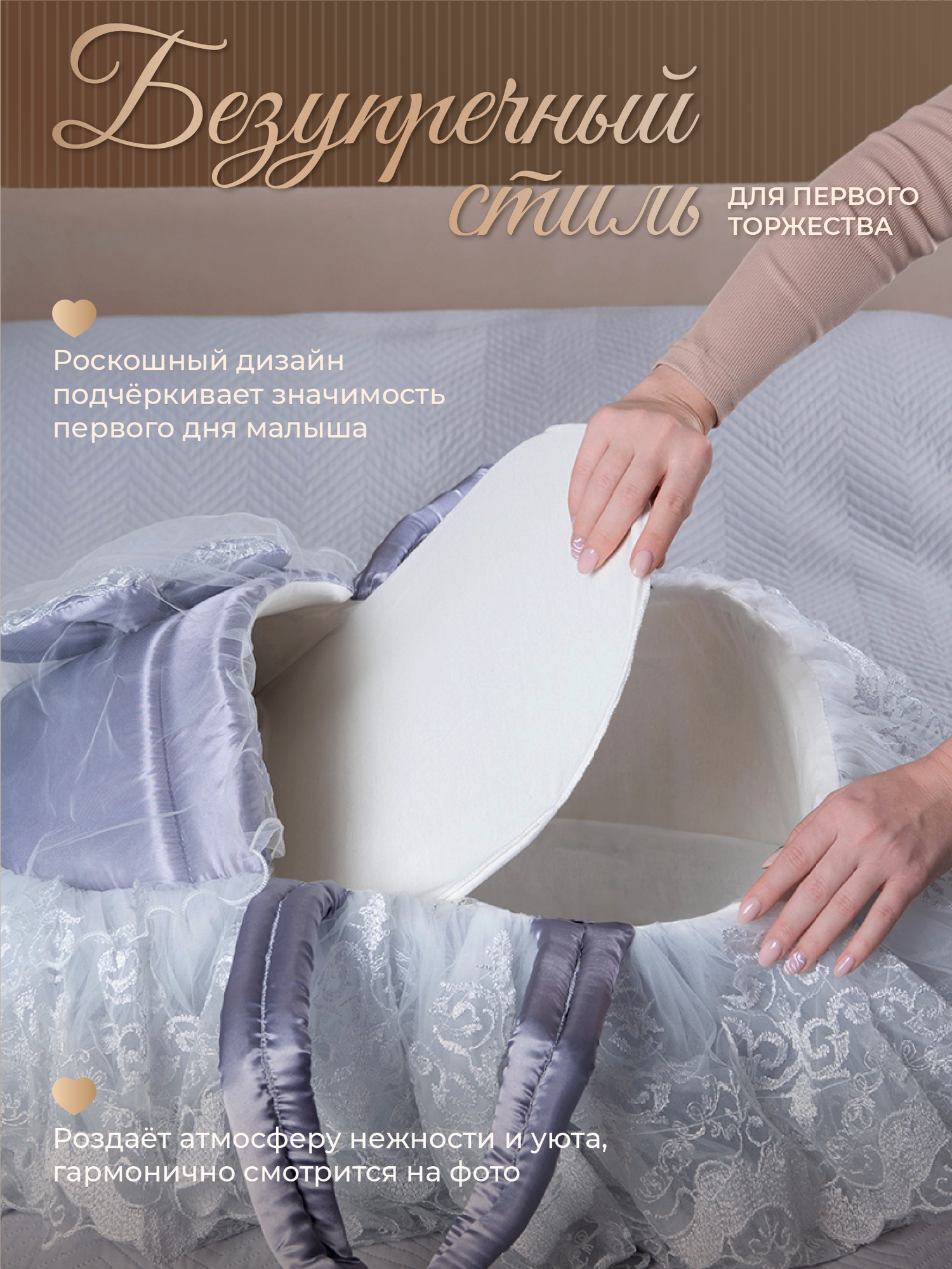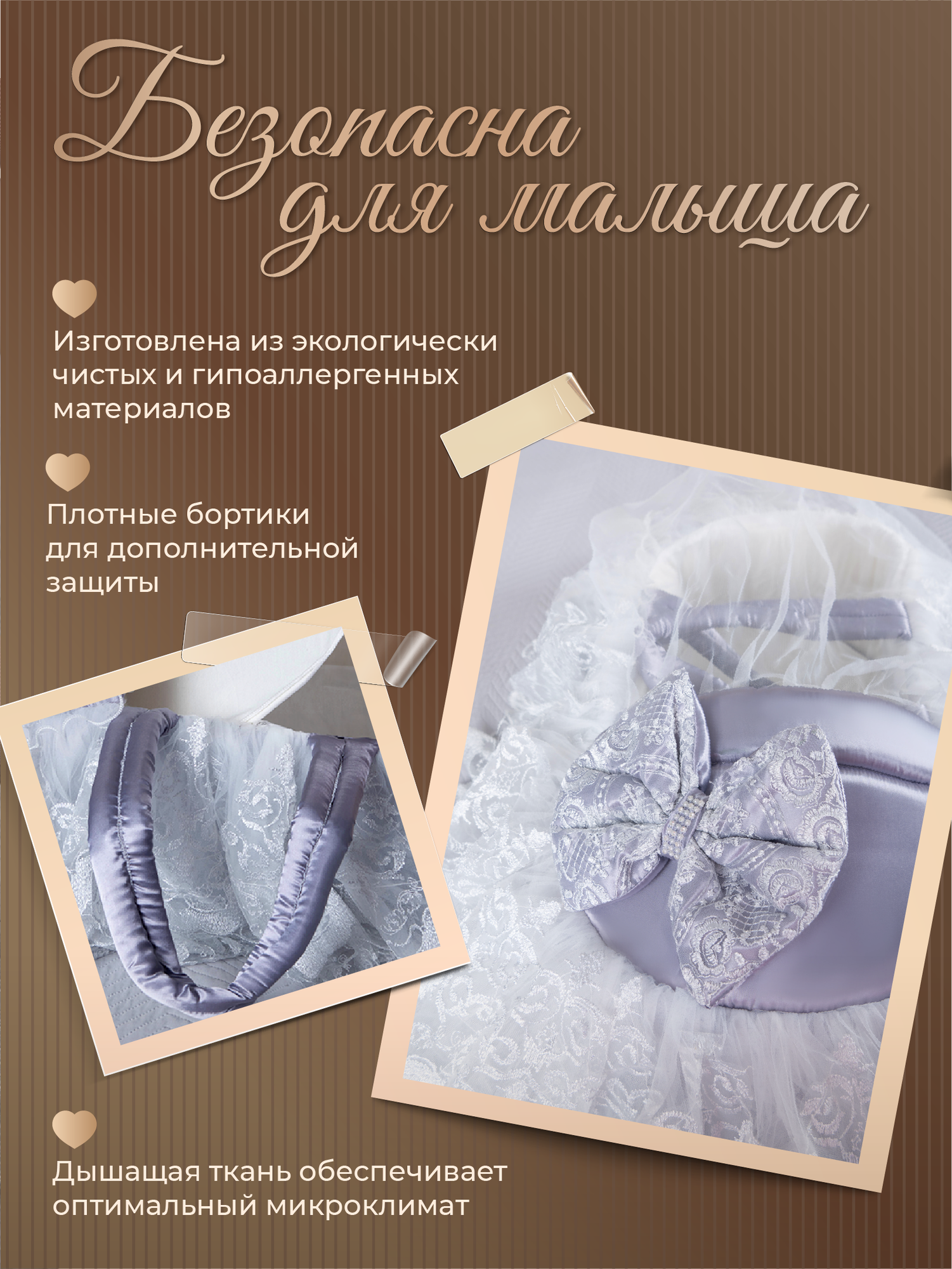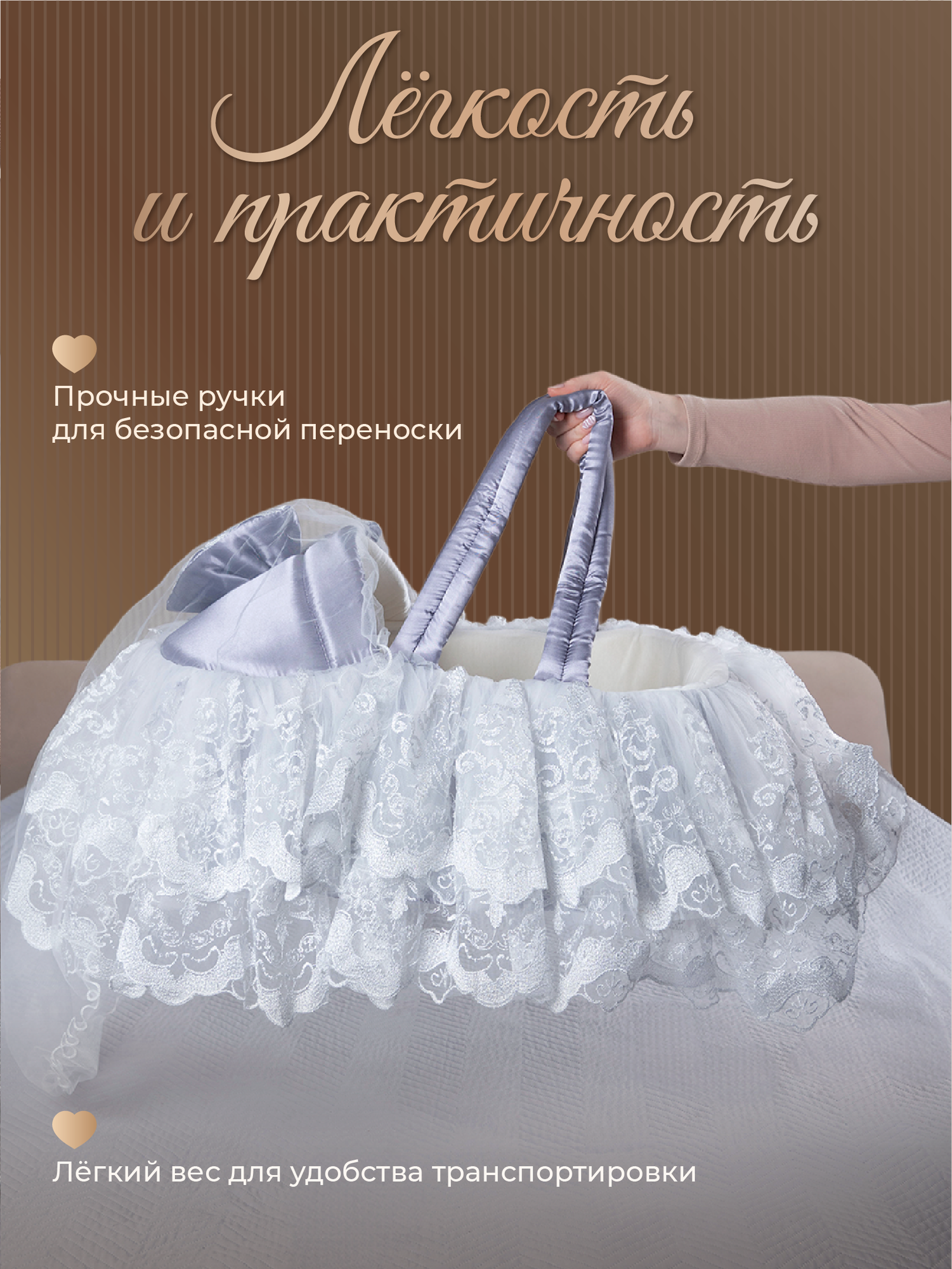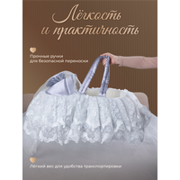 Корзина для новорожденных с кружевными элементами изготовлена из безопасных и гипоаллергенных материалов, что обеспечивает комфорт для вашего малыша.