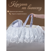 Корзина на выписку из роддома для новорожденных с кружевными элементами станет незаменимым аксессуаром для вашего малыша.