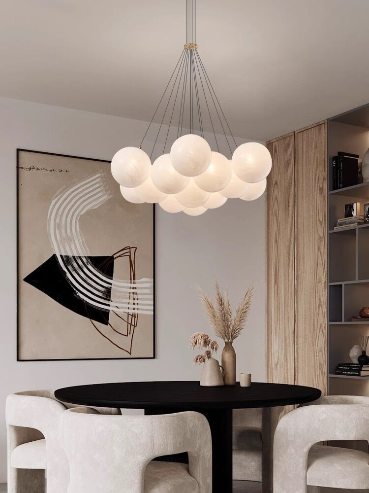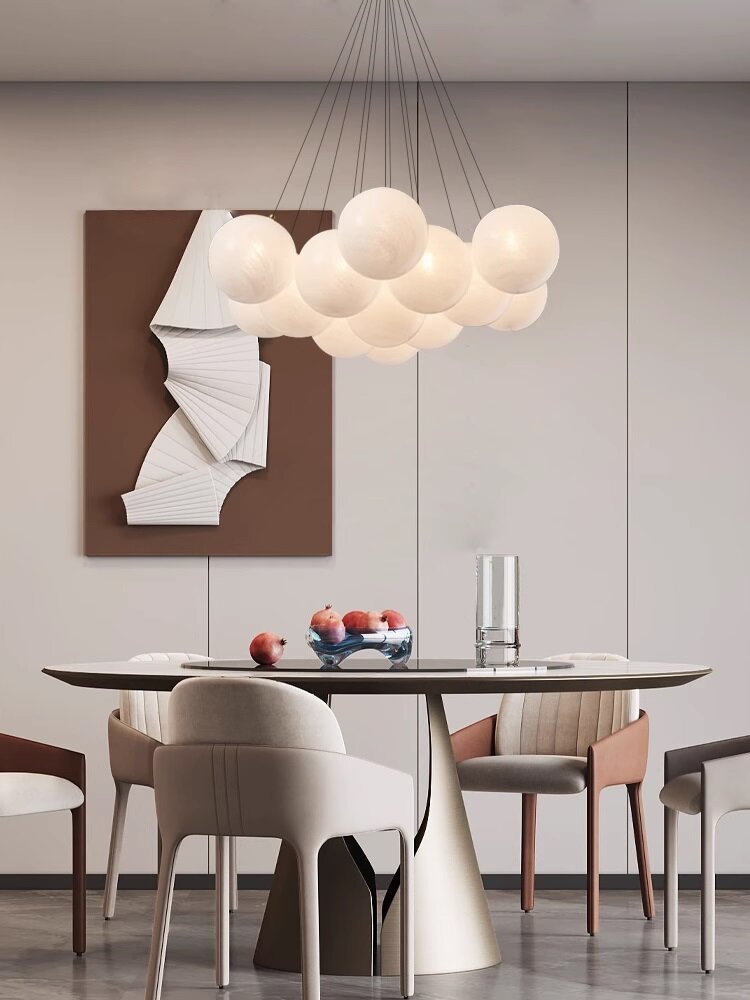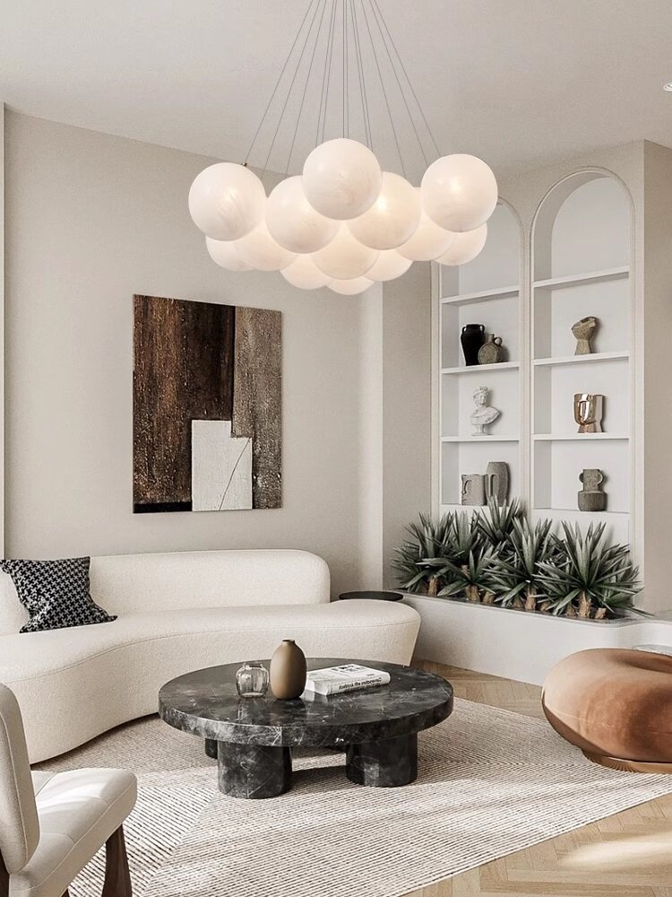 Люстра светодиодная 13 кремовых шаров - это подвесной светильник, выполненный в современном стиле.
