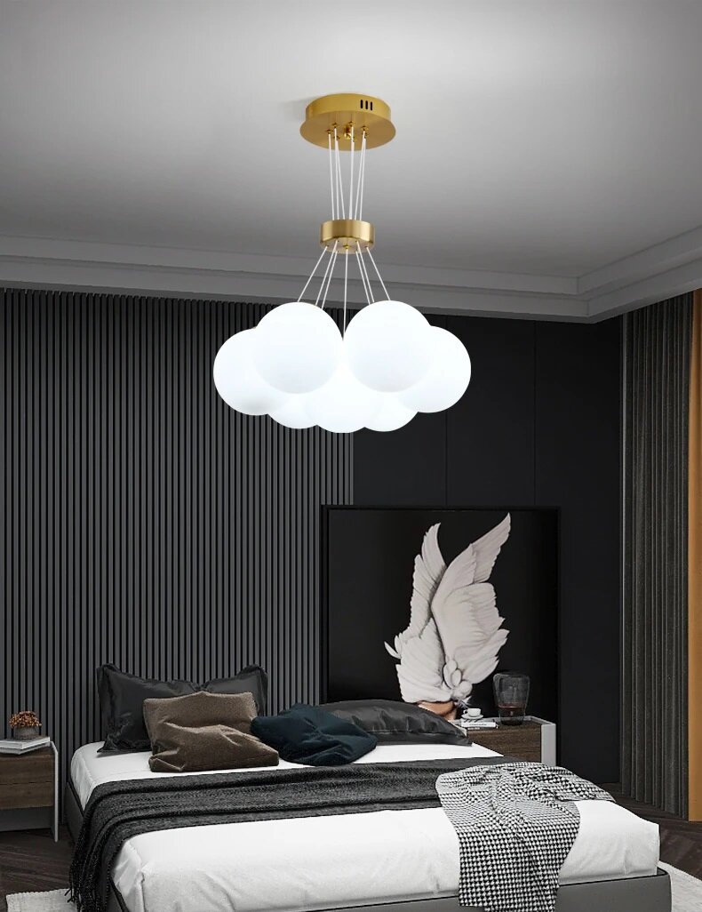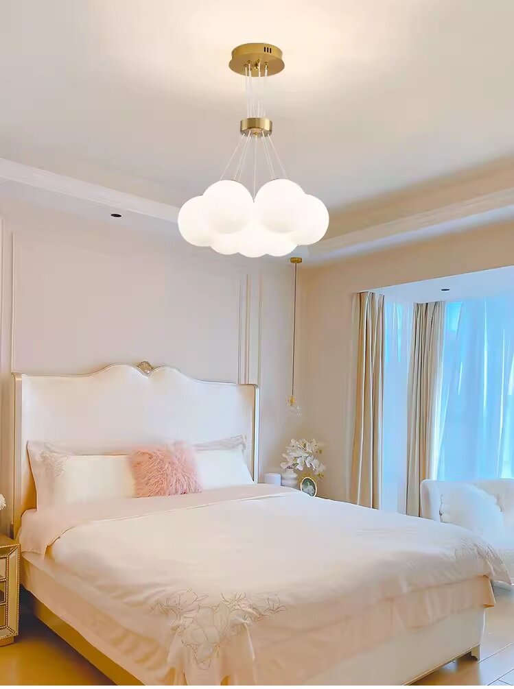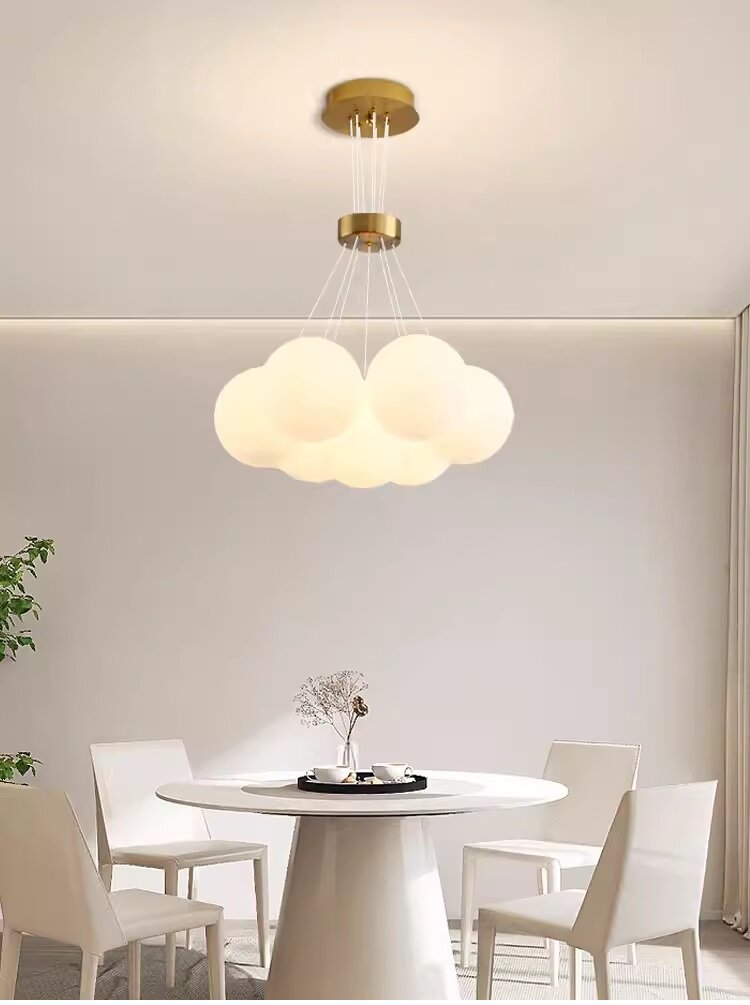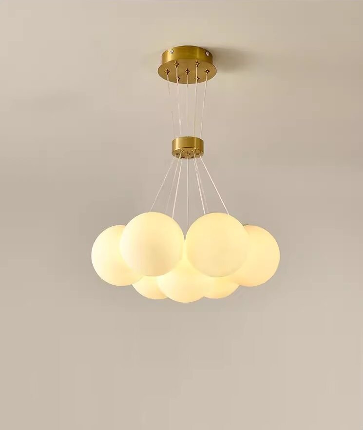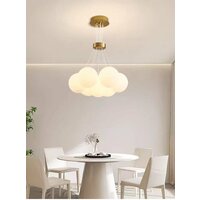 Купить Элегантная подвесная люстра с 7 белыми шарами – стильный светильник для гостиной, спальни или детской с доставкой по всей России.