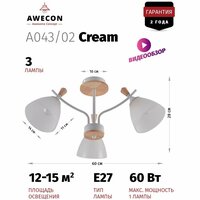 Купить Люстра Awecon Cream, E27, 60W, 3 лампы, площадь освещения 15 кв. м с доставкой по всей России.