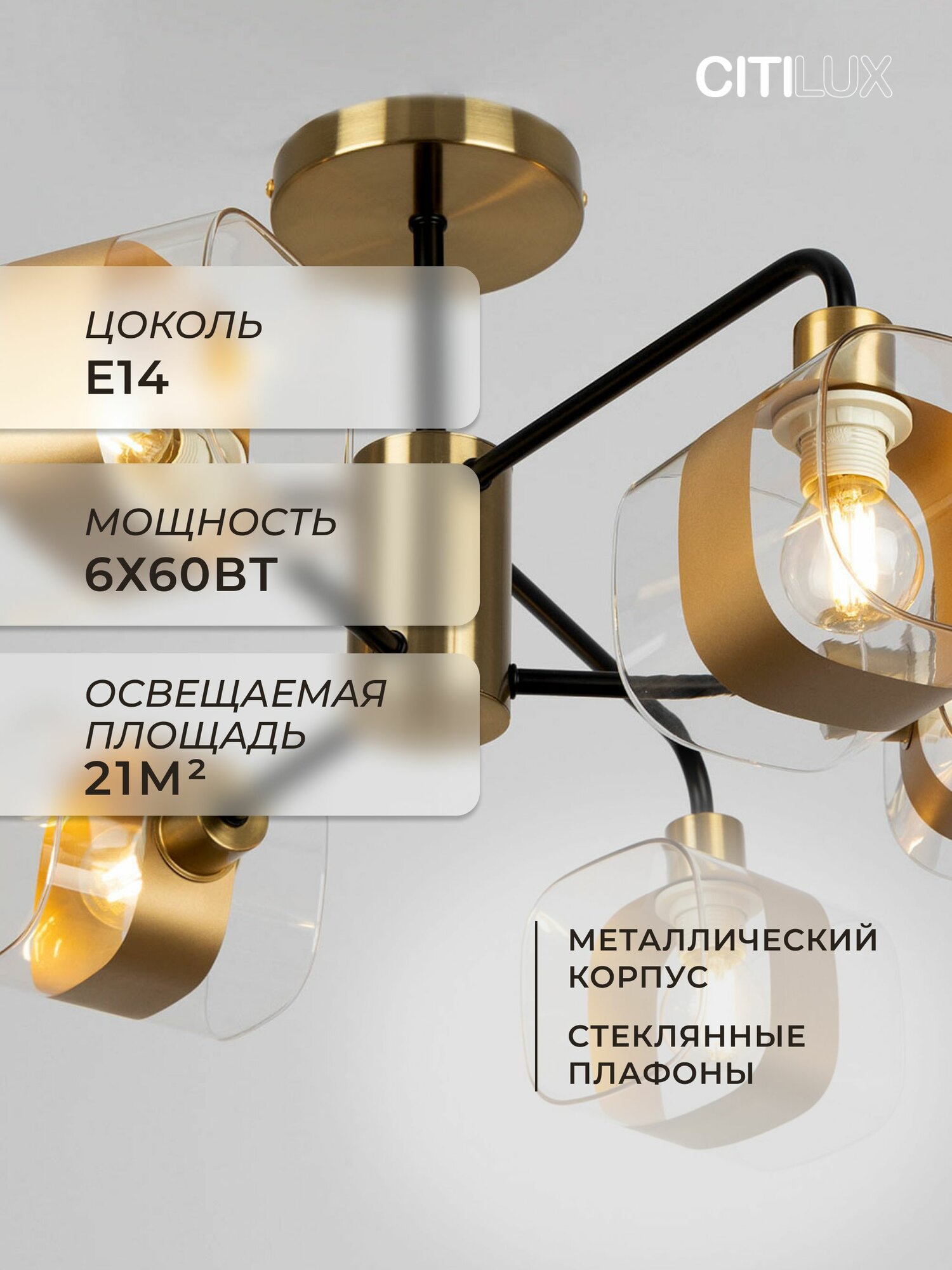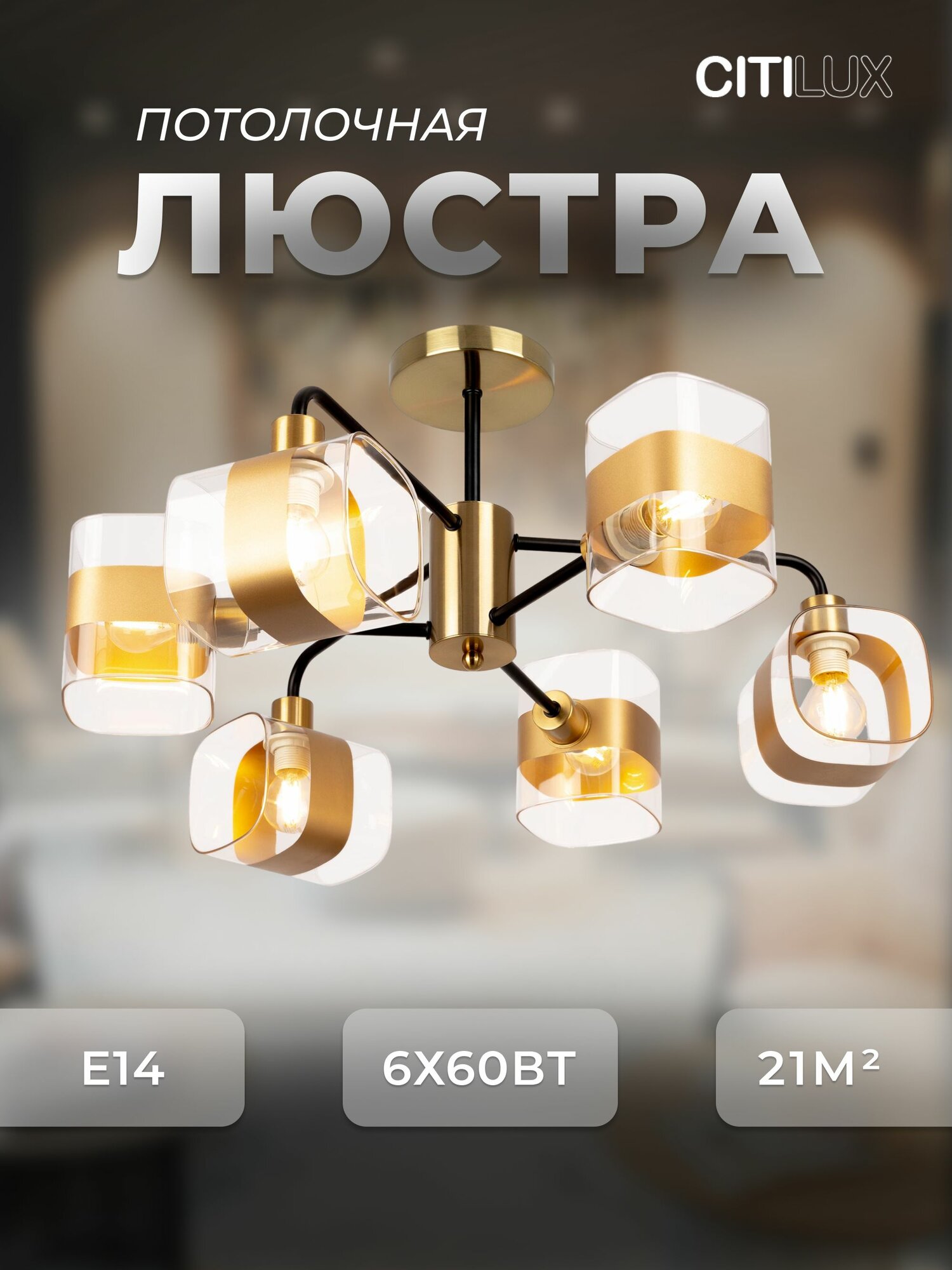 Люстра Citilux «Бертон» CL140161, потолочная, 6 ламп, мощность 360 Вт, E14: сравнение цен, характеристики, фото, актуальное наличие и цены.