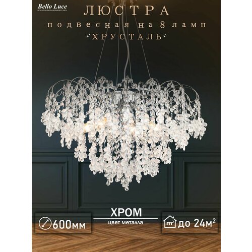 Люстра хрустальная подвесная хром с матовыми хрустальными подвесками на 8 ламп E14, регулировка по высоте: сравнение цен, характеристики, фото, актуальное наличие и цены.