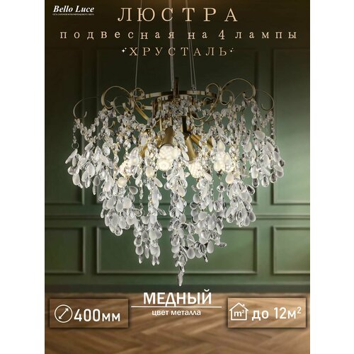 Люстра хрустальная подвесная медь с матовыми хрустальными подвесками на 4 лампы E14, регулировка по высоте: сравнение цен, характеристики, фото, актуальное наличие и цены.