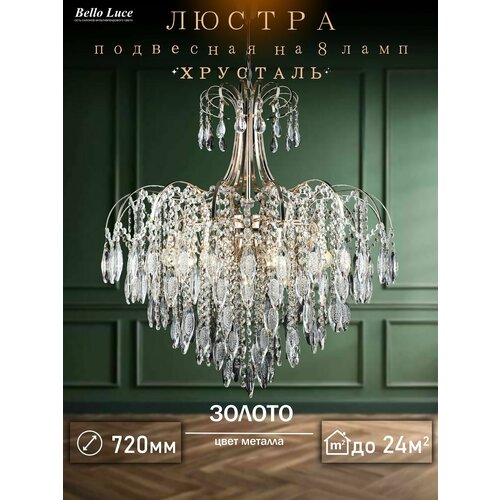 Люстра хрустальная золотая подвесная круглая с прозрачными хрустальными подвесками на 8 ламп E27, регулировка по высоте: сравнение цен, характеристики, фото, актуальное наличие и цены.