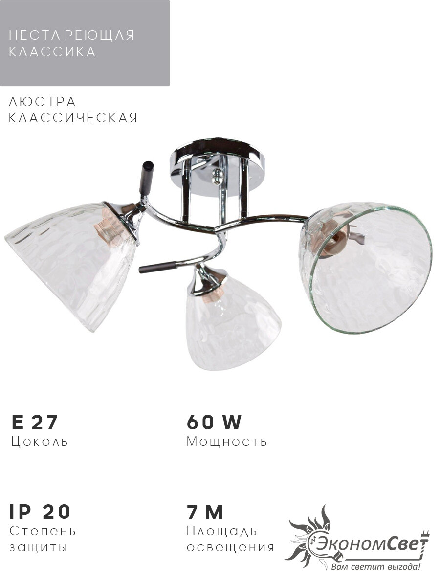 Люстра классическая 12236/3CR+BK CL ЭкономСвет: сравнение цен, характеристики, фото, актуальное наличие и цены.