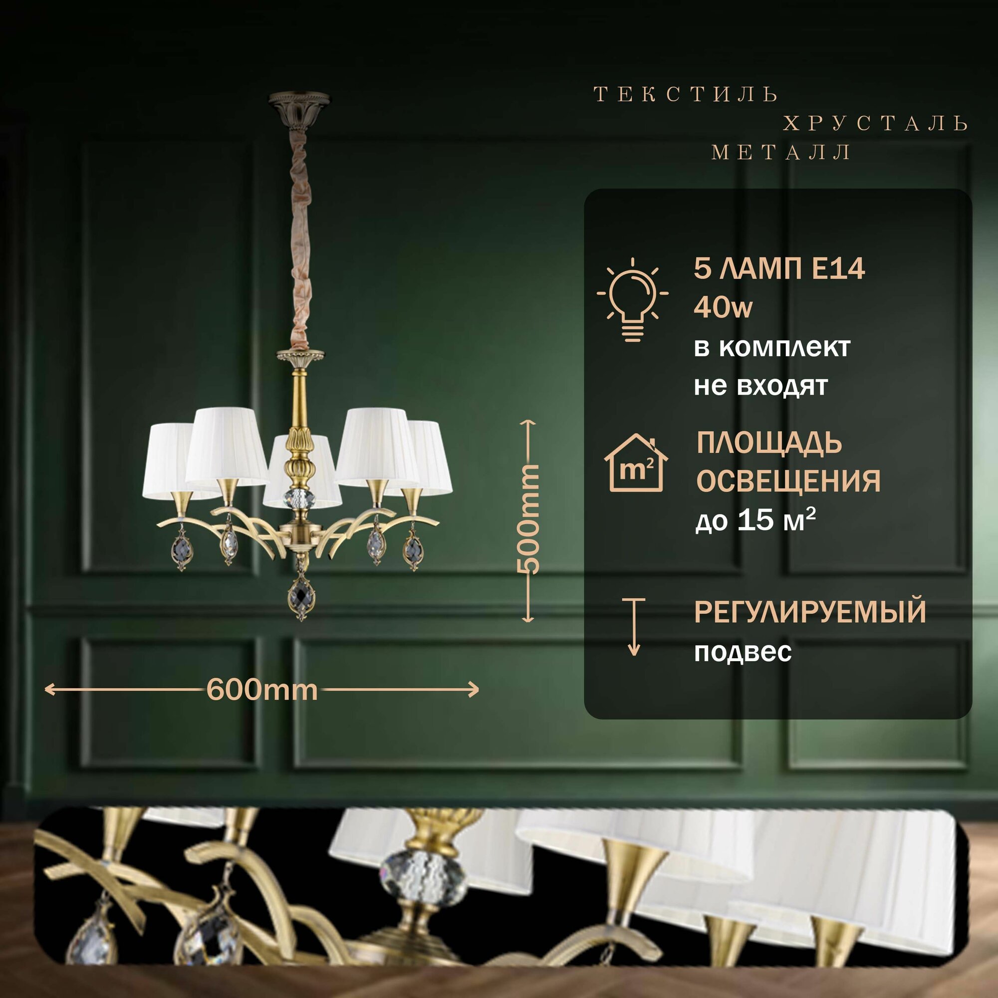 Купить Люстра Классика античная бронза подвесная с белым текстильным абажуром с хрустальными подвесками на 5 ламп E14, регулировка по высоте с доставкой по всей России. Люстра Классика античная бронза подвесная с белым текстильным абажуром с хрустальными подвесками на 5 ламп E14, регулировка по высоте: сравнение цен, характеристики, фото, актуальное наличие и цены.