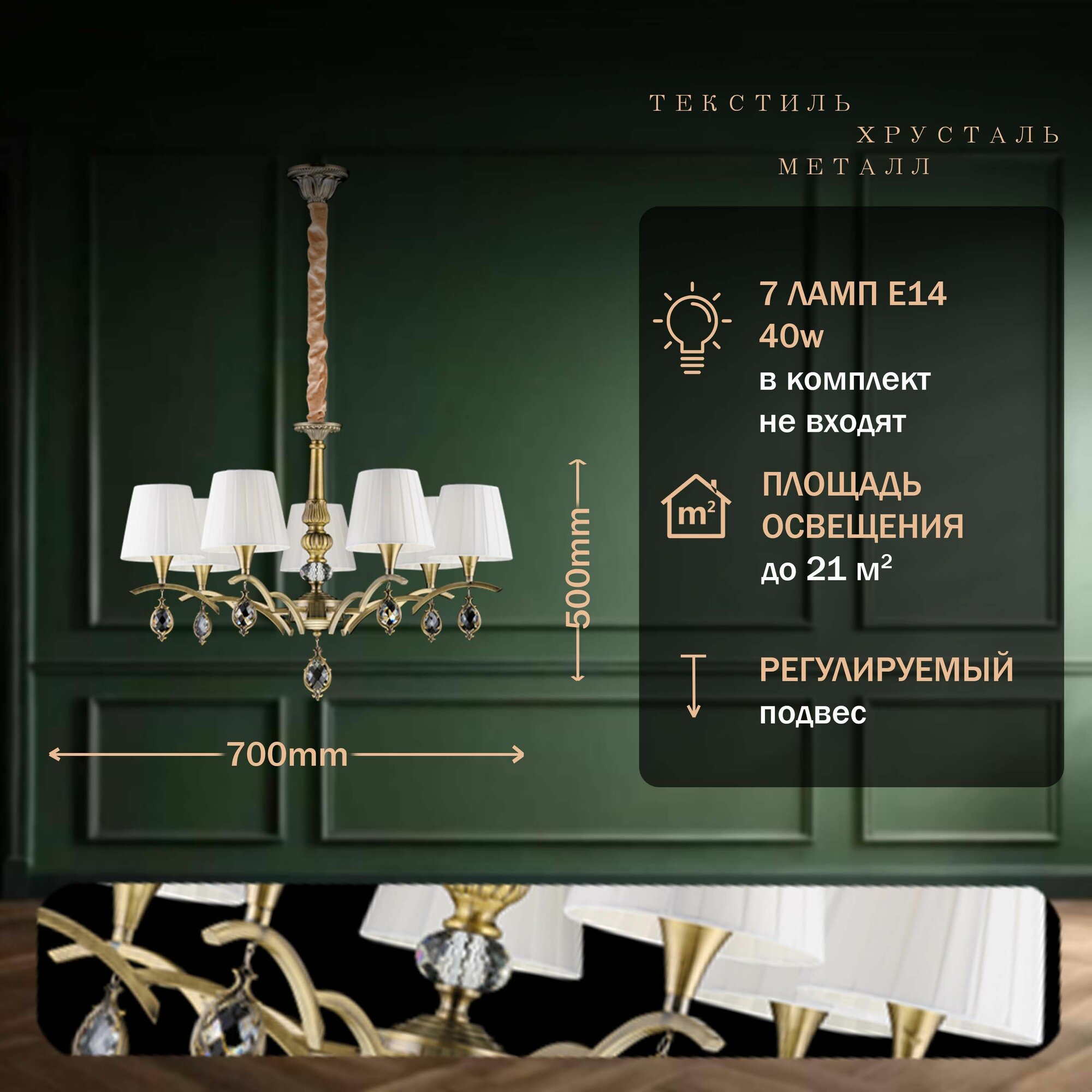 Купить Люстра Классика античная бронза подвесная с белым текстильным абажуром с хрустальными подвесками на 7 ламп E14, регулировка по высоте с доставкой по всей России. Люстра Классика античная бронза подвесная с белым текстильным абажуром с хрустальными подвесками на 7 ламп E14, регулировка по высоте: сравнение цен, характеристики, фото, актуальное наличие и цены.