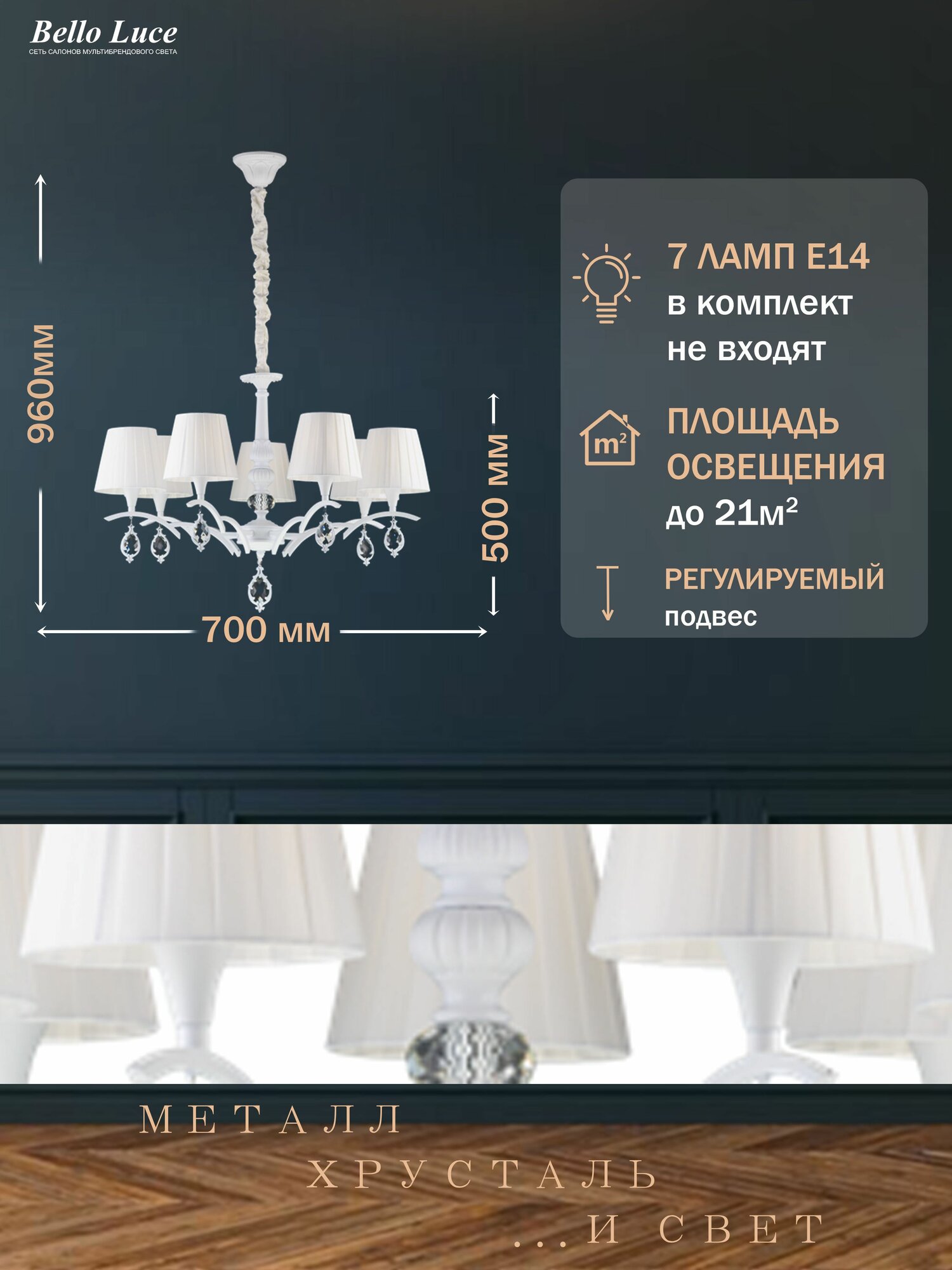 Не упустите шанс преобразить ваш интерьер с помощью этого роскошного осветительного прибора. Добавьте изысканности и элегантности в свое пространство.