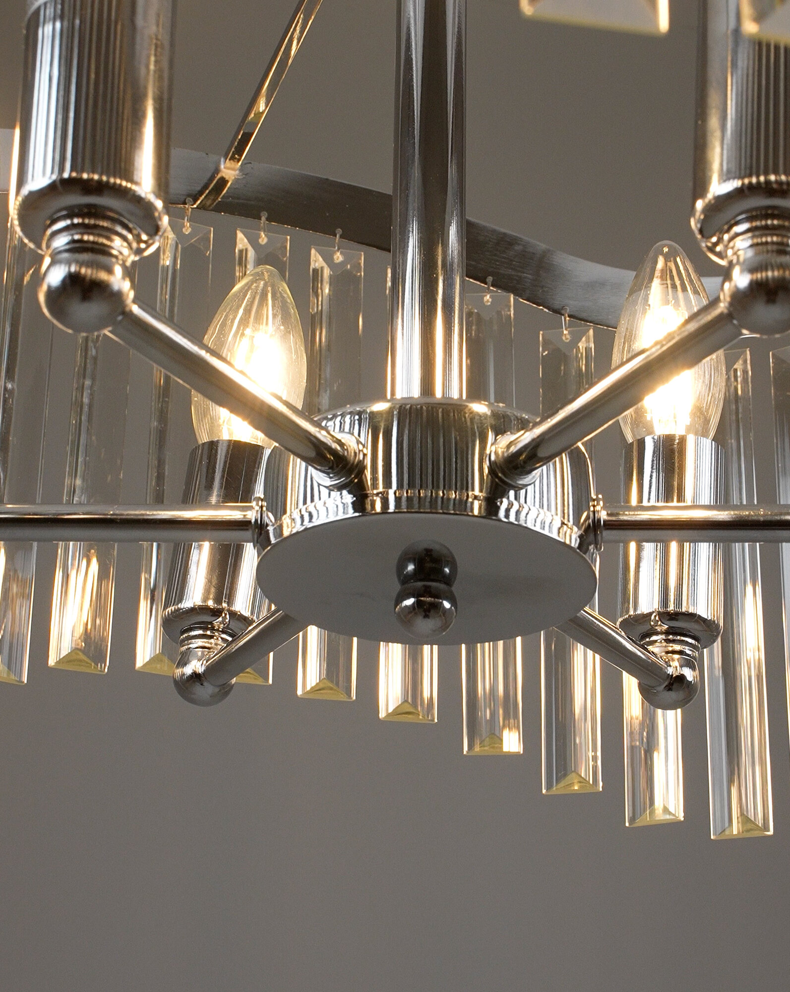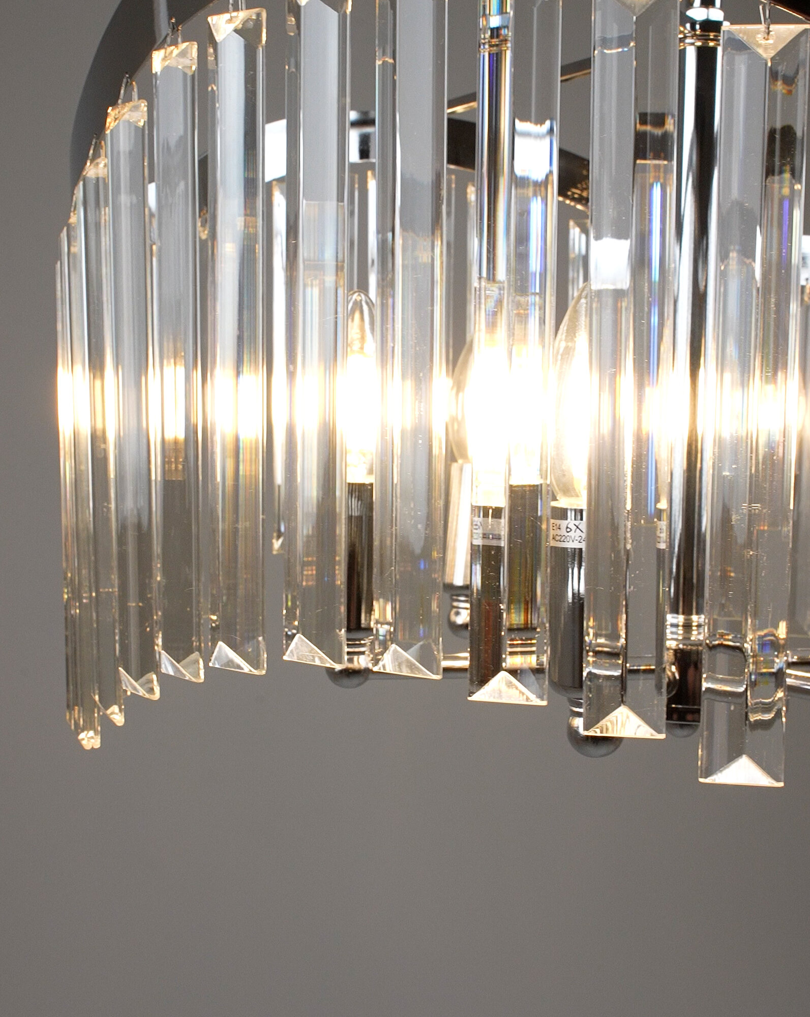 Основные Цвет: хром Габариты В*Ш*Г: 148*48*48 см Высота изделия (габарит): 148 см Ширина изделия (габарит): 48 см Глубина изделия (габарит): 48 см Технические Требуется сборка: true Вес нетто изделия: 4.12 кг Вес брутто изделия: 5.4 кг Вес коробки: 5.4 Объем всех коробов в сумме: 0.036 м3 Объем коробки: 0.036 Габариты Д*Ш*В (1 коробки), см: 49*49*15 см Характеристики освещения Высота без цепи: 42 см Высота цепи: 31.5-100 см В*Ш*Г потолочной чаши: 7*11*11 Количество ламп: 6 Тип цоколя: E14 Мощность лампы: 40 Вт Площадь освещения: 15 кв. м Подходит для натяжных потолков: да Наличие диммера: нет Наличие пульта д/у: нет Тип включения/выключения: механический Наличие датчика движения: нет Расположение выключателя: на стене Управление со смартфона: нет Способ крепления: на крюк Лампы в комплекте: нет Тип лампы: накаливания или LED Тип питания: сеть Материал корпуса: металл, хрусталь К9 Материал корпуса подробно: металл Тип покрытия: глянцевый Материал плафонов: хрусталь Цвет корпуса: хром Цвет плафонов: прозрачный Место применения: кухня, гостиная, спальня, прихожая Тип установки: подвесной Дополнительные параметры и особенности: регулируется по высоте