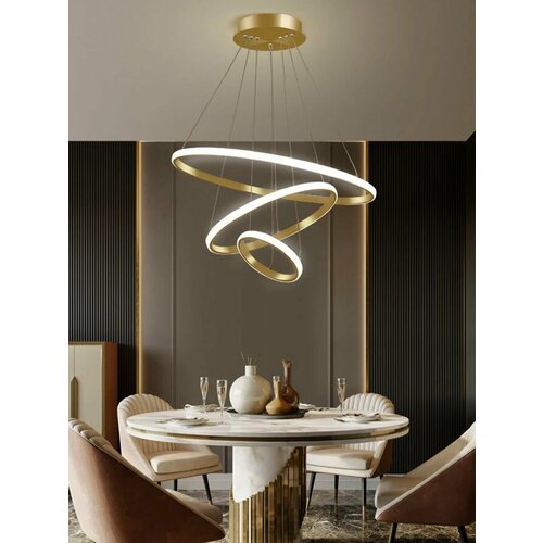 Подвесной светодиодный светильник и потолочная люстра подходят для любой комнаты. Они освещают помещение площадью до 15 квадратных метров. Если вы хотите добавить некоторые уникальные акценты в интерьер, выберите нашу подвесную люстру с тремя кольцами, которые можно расположить по вашему усмотрению. Трёхкольцевая люстра прекрасно подходит для детской комнаты. Она создаст уютную атмосферу для игр и занятий детей. Подвесной светильник подходит для спальни, гостиной, столовой, детской комнаты, гостиной или прихожей. Это осветительное устройство оснащено механическим выключателем для трёхуровневой регулировки яркости. Оно обладает отличной освещённостью и высококачественным светом, что делает его идеальным для любой комнаты в вашем доме. Оно особенно подходит для просторных холлов или спален, где необходимо много света. Подвесной светильник подходит для различных стилей интерьера, таких как индустриальный, современный, минималистический, скандинавский и т. д. Наша люстра на подвесе привлечет внимание всех гостей и создаст уютную атмосферу в вашем доме.