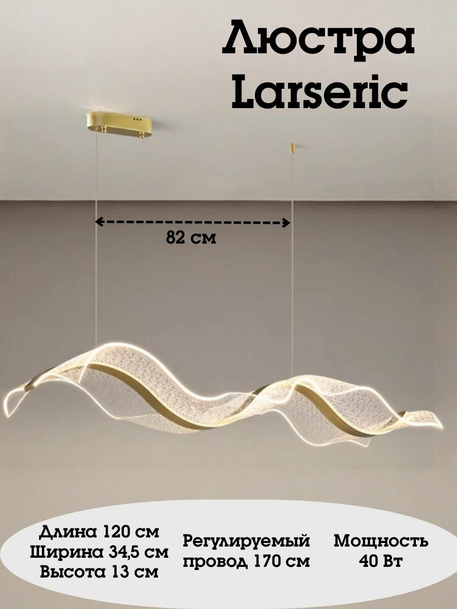 Люстра подвесная волна LED 40 Вт Larseric L120 см прозрачный Blesslight - это уникальный светильник, который придаст вашему дому особый шарм и стиль. Этот светильник изготовлен из качественных материалов, таких как ацрил и металл, что обеспечивает долгий срок службы и высокую прочность конструкции.