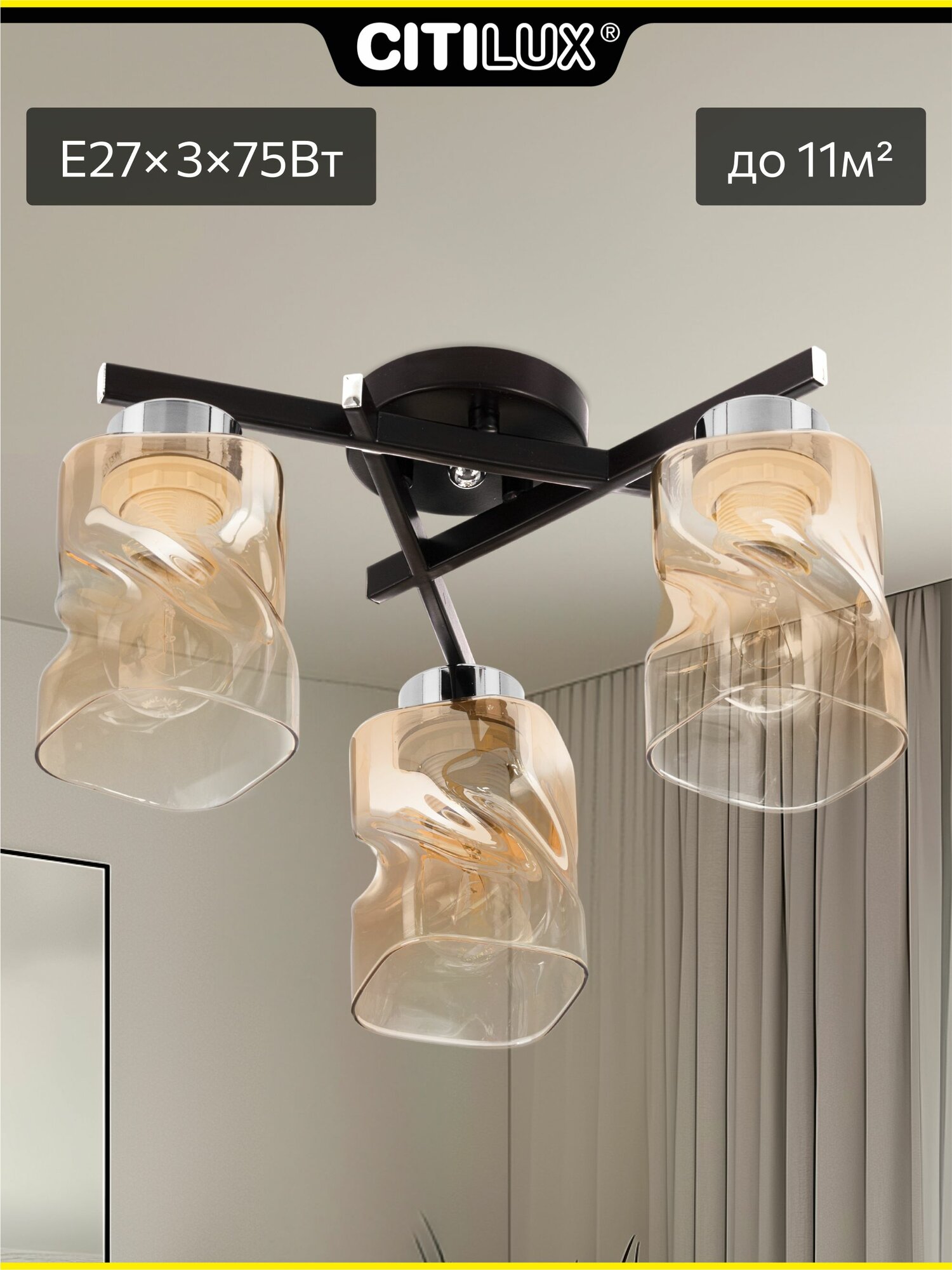 Люстра потолочная Citilux Гранада CL135131, хром + венге, 3 плафона, цоколь E27: сравнение цен, характеристики, фото, актуальное наличие и цены.
