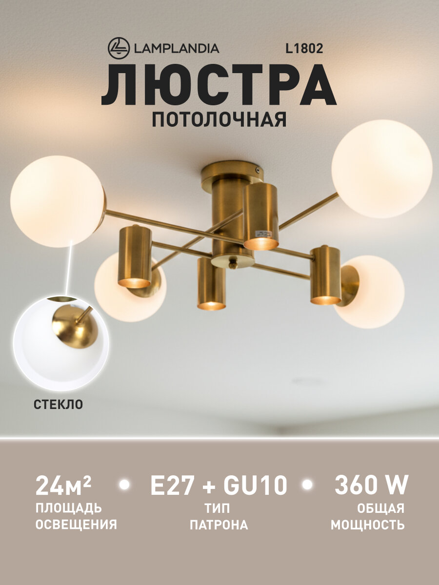 Люстра потолочная Lamplandia L1802 SET GOLD, Е27*4 макс 40Вт +GU10*4 макс 50Вт: сравнение цен, характеристики, фото, актуальное наличие и цены.