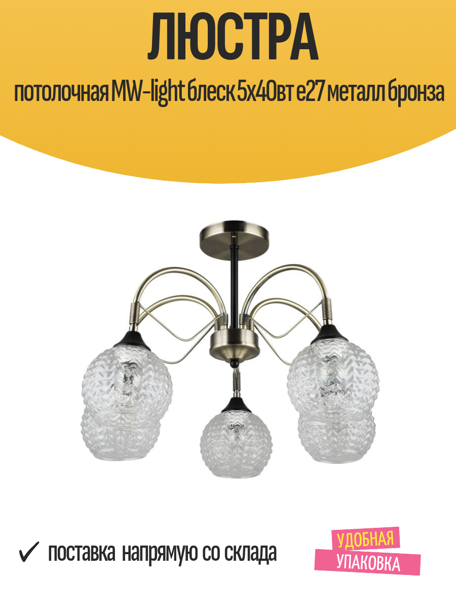 | Дополнительная информация | Люстра потолочная MW-light блеск 5х40вт e27 металл бронза |