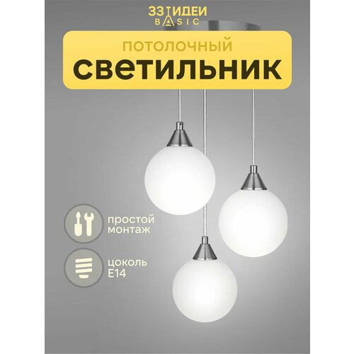 Люстра потолочная подвесная KONUS FOGGY GLOBE 150 33 Идеи BASIC Хром / Белый фростед (матовый), цоколь E14, с плафонами, PND.105.03.11.001. CH-S.01. WH
