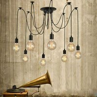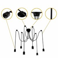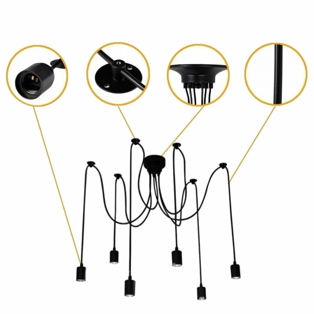 Подвесной светильник Паук в стиле Loft (Лофт) подойдет для спальни, гостиной, кабинета, бара, кафе или ресторана. В патроны люстры можно вставить лампочки любой формы с цоколем Е27.
