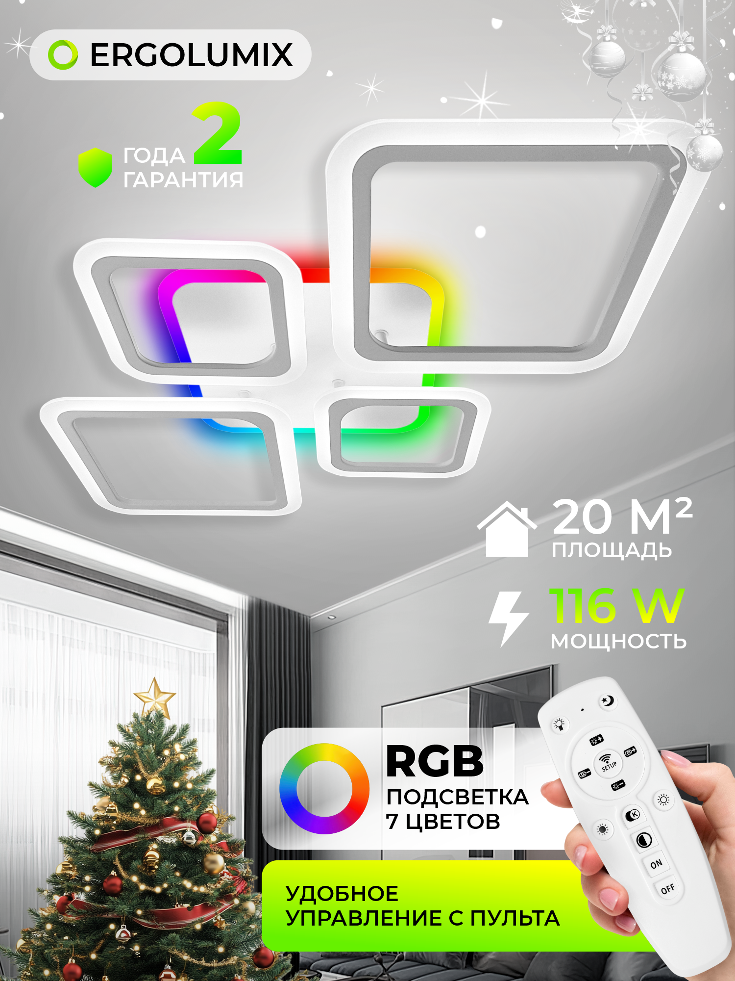 Люстра потолочная светодиодная / Светильник светодиодный в гостиную, на кухню, в спальню; 116W