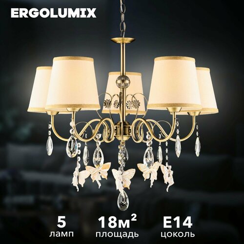 Освещение и мощность: люстра оснащена цоколем E14. В комплекте не поставляются лампы, но в эту люстру можно установить пять ламп мощностью до 40 Вт каждая.