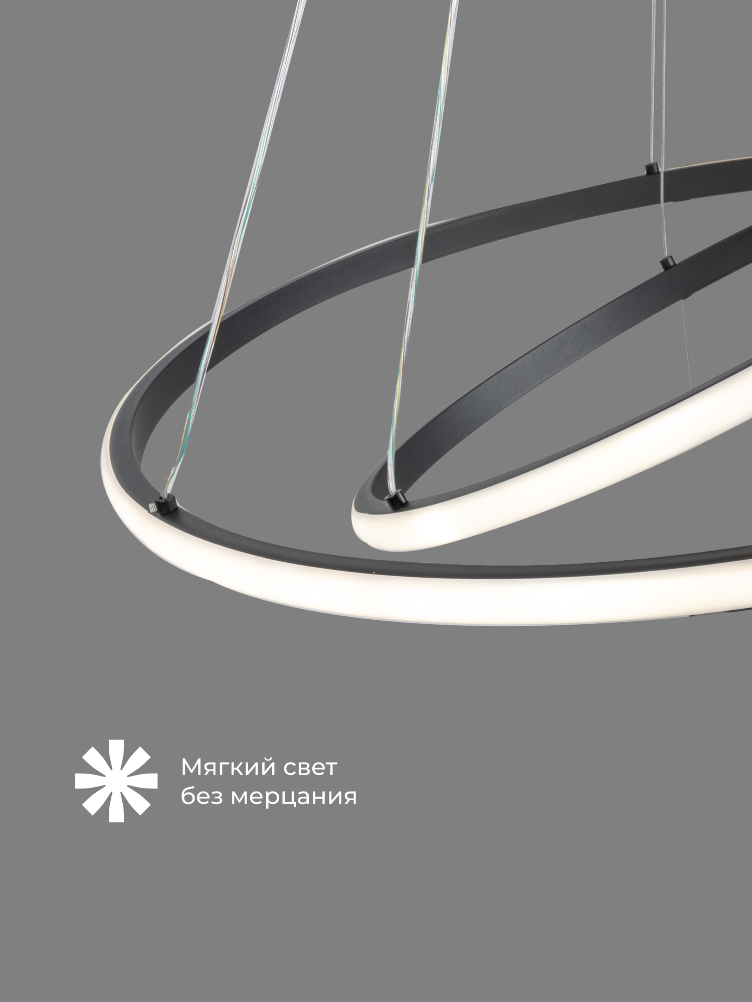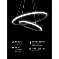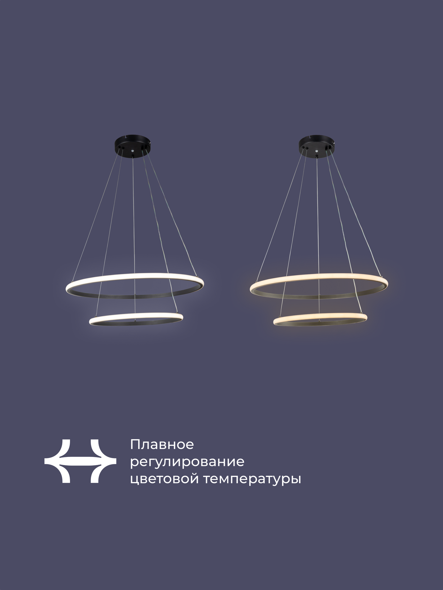 Люстра светодиодная Homsly, 80 Вт, подвесная, 2 кольца, с функцией смены цветовой температуры, ACL_052, черный
