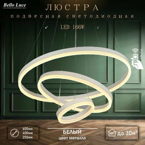 Люстра светодиодная подвесная с пультом круглая, белая, 166W, плавная регулировка яркости и цветовой температурой освещения в диапазоне от 3000К до 6500К: сравнение цен, характеристики, фото, актуальное наличие и цены.