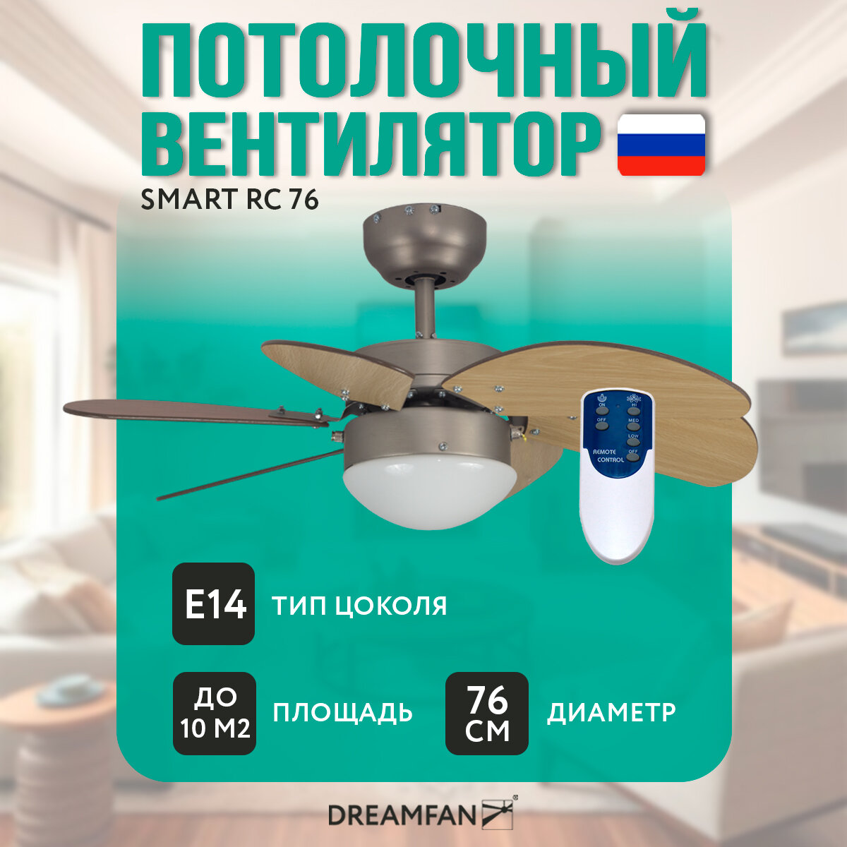 Купить Люстра вентилятор DREAMFAN Smart RC 76 90200DFN, 1 плафон, Е14, диаметр 76 см с доставкой по всей России.