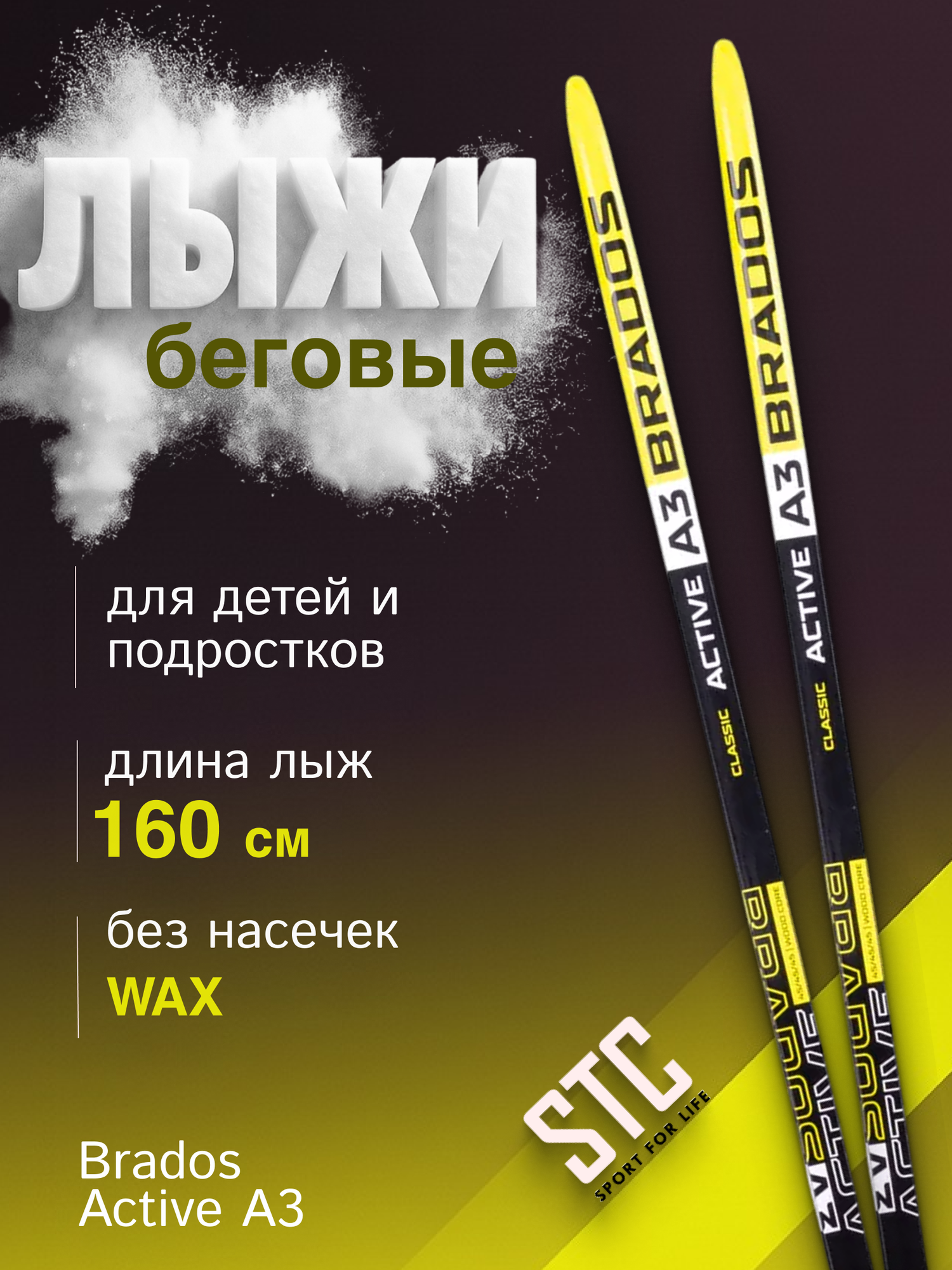 Лыжи беговые STC Brados Active A3 Yellow 160 см для детей и подростков без насечек: сравнение цен, характеристики, фото, актуальное наличие и цены.