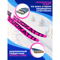 Лыжи "VUOKATTI" имеют конструкцию "САР", которая обеспечивает высокую прочность и устойчивость к внешним воздействиям. Они не требуют сушки после катания и оснащены системой насечек для лучшего сцепления со снегом.