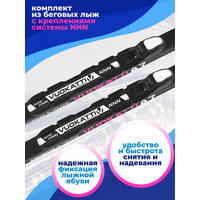 Лыжный комплект "VUOKATTI" - это идеальное решение для любителей активного отдыха и зимних видов спорта. Этот комплект включает в себя беговые лыжи длиной 170см с креплениями NNN и без палок, что делает его универсальным для всех уровней катания.
