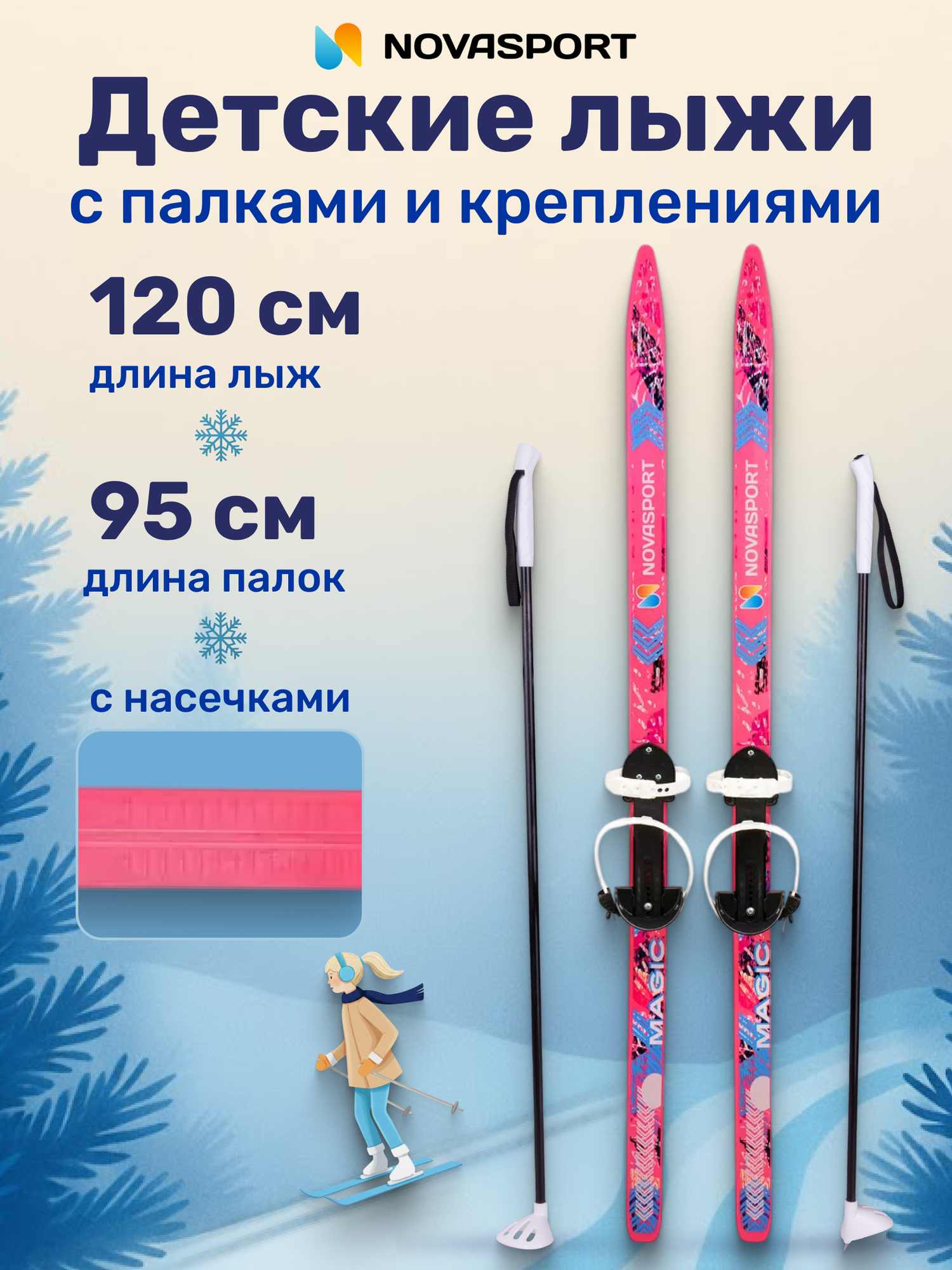 Купить Лыжи детские с палками с креплениями 120 см/95 см NovaSport Magic комплект лыжный детский с доставкой по всей России.