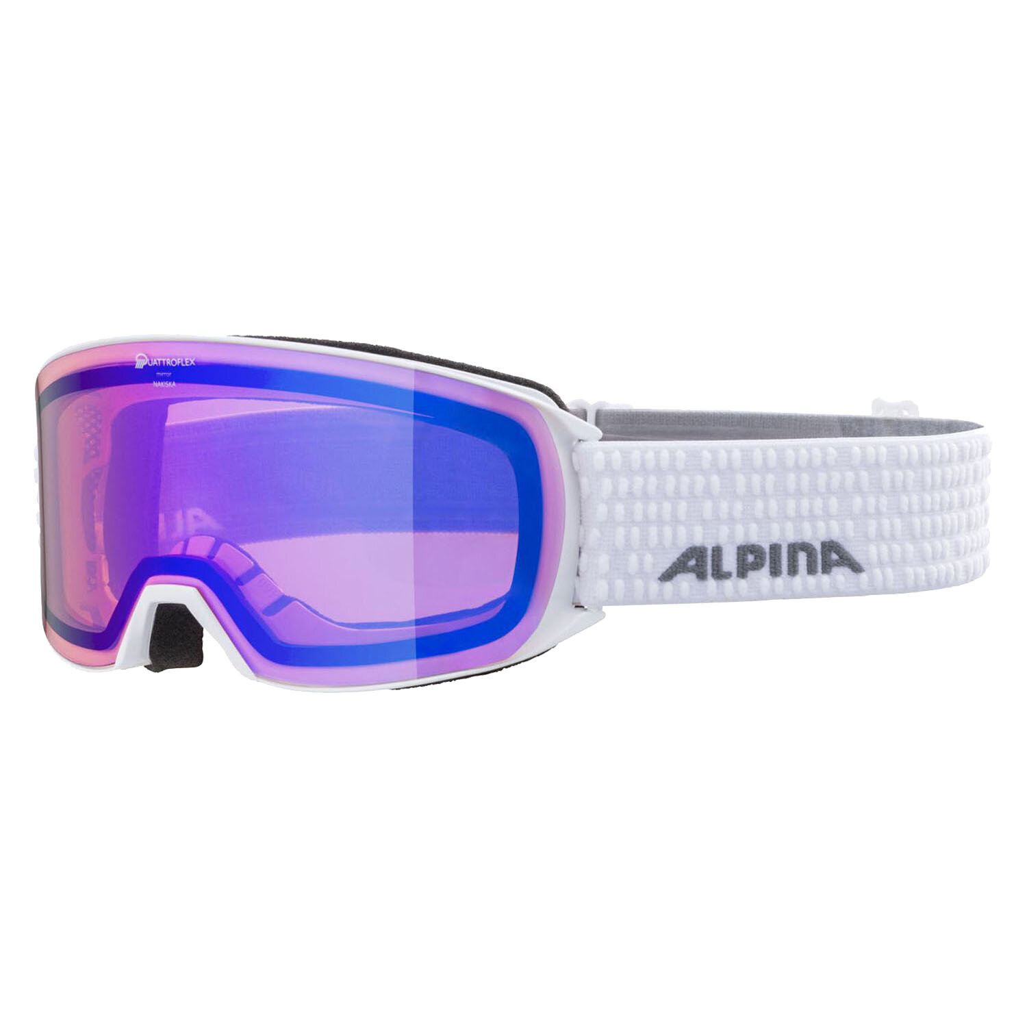 Маска ALPINA Nakiska - это сочетание современного, актуального дизайна, широкого обзора и точной, комфортной посадки для среднего типа лица. Контрастно усиленная линза Quattroflex обеспечивает четкую видимость на склонах. Зеркальная линза также обеспечивает 100% защиту от лучей UV-A, -B и -C. Воздушная подушка между отдельными линзами создает тепловой блок, который предотвращает запотевание линз. Кроме того, очки сконструированы таким образом, что под них можно надевать рецептурные очки. Удобная оправа идеально прилегает к лицу и приятна в носке благодаря мягкой двухслойной поролоновой подкладке.