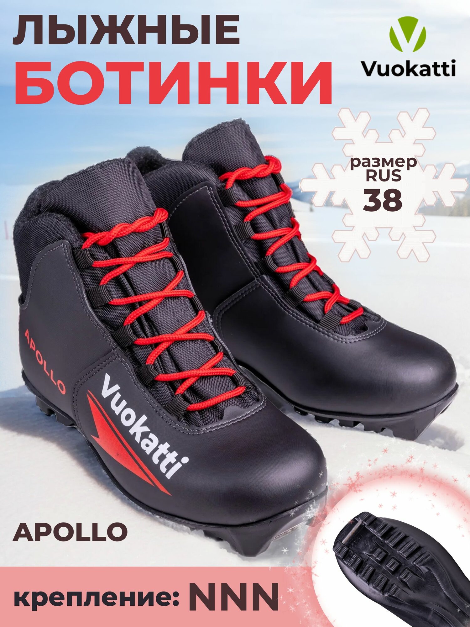Лыжные ботинки NNN Vuokatti Apollo для беговых лыж черно-красные 38 размер: сравнение цен, характеристики, фото, актуальное наличие и цены.